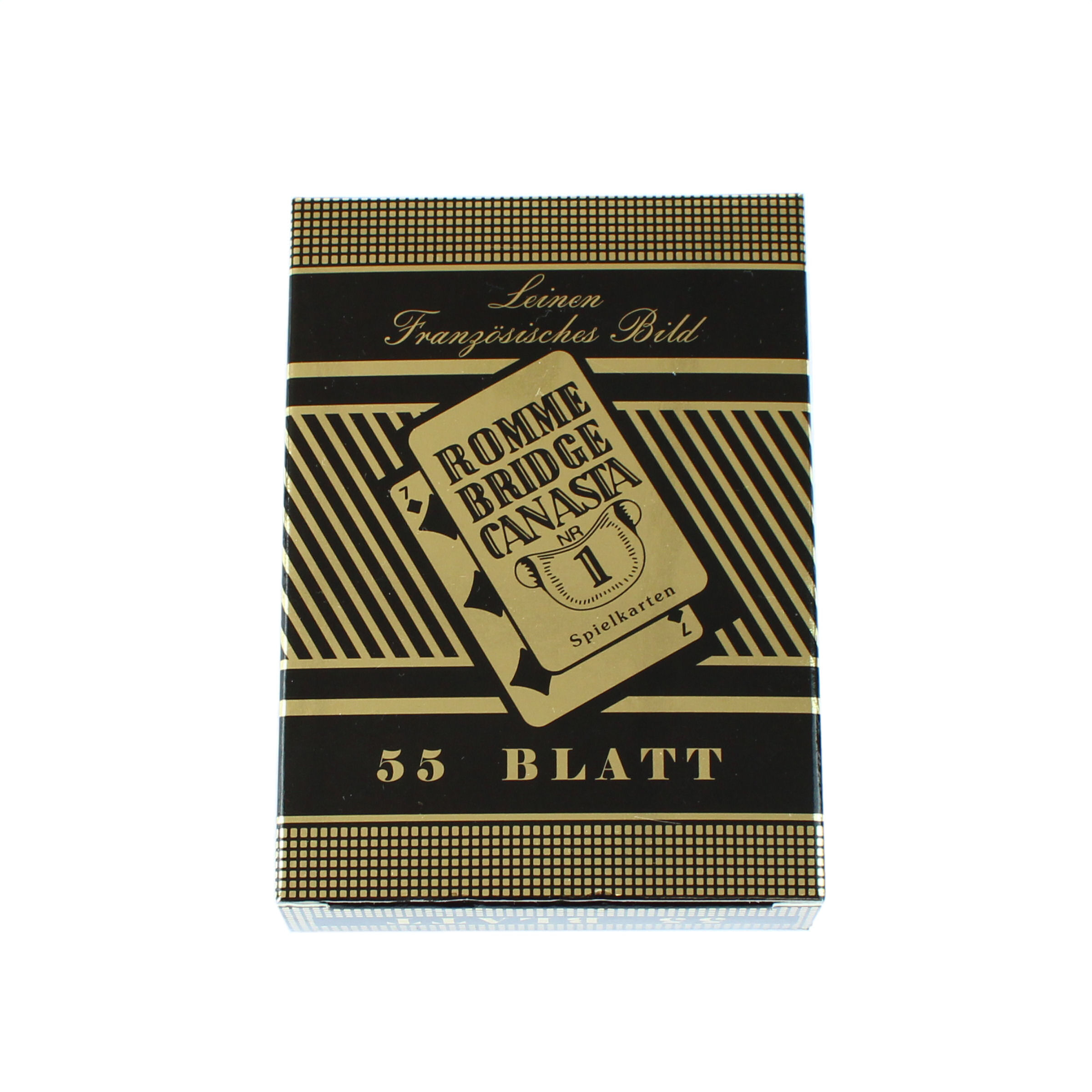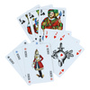 A beautiful set of cards, styled after German wartime playing cards, in traditional French graphic style. The set includes a standard pack of 52 cards, plus an additional 3 cards of the so-called "1870's French Cantiniere" Jokers. Packaged in a beautifully decorated, gold-plated cardboard box. These cards will help you avoid boredom around the campfire, at home, or during historical reenactment.