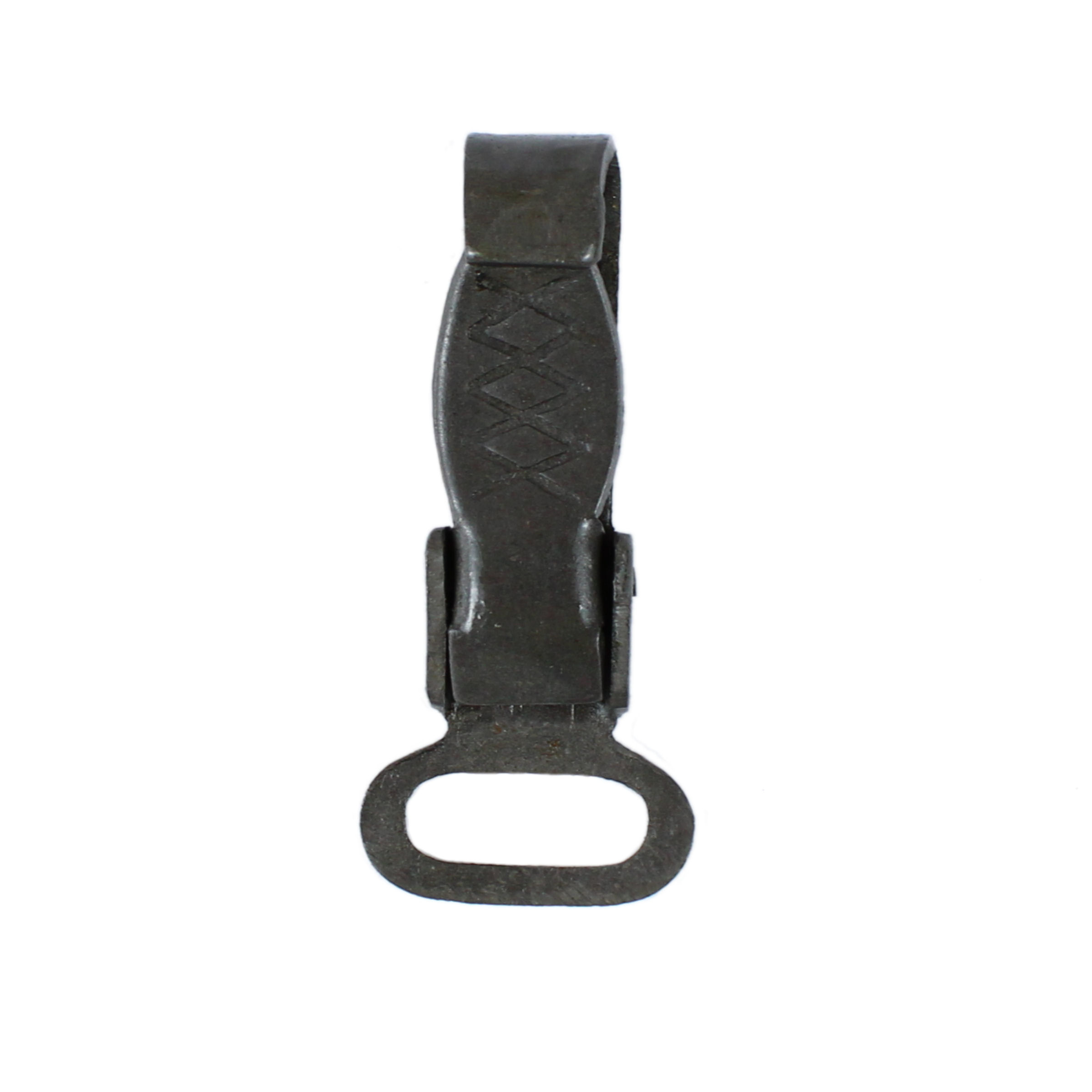 Steel hook for the holding strap of a German M31 canteen. Hook dimensions: 62 x 24 x 15 mm. Weight 20 g. Modeled after the original hook.