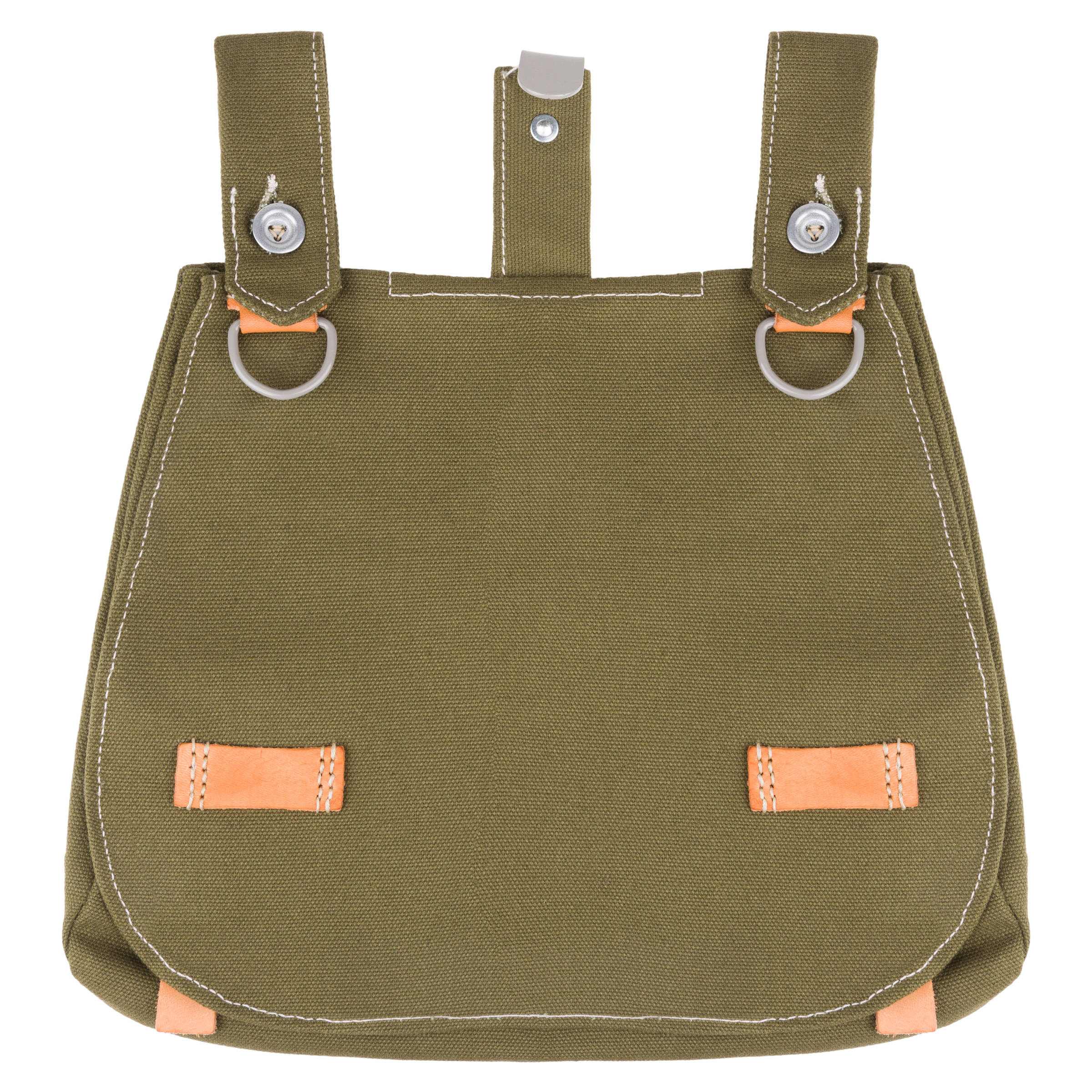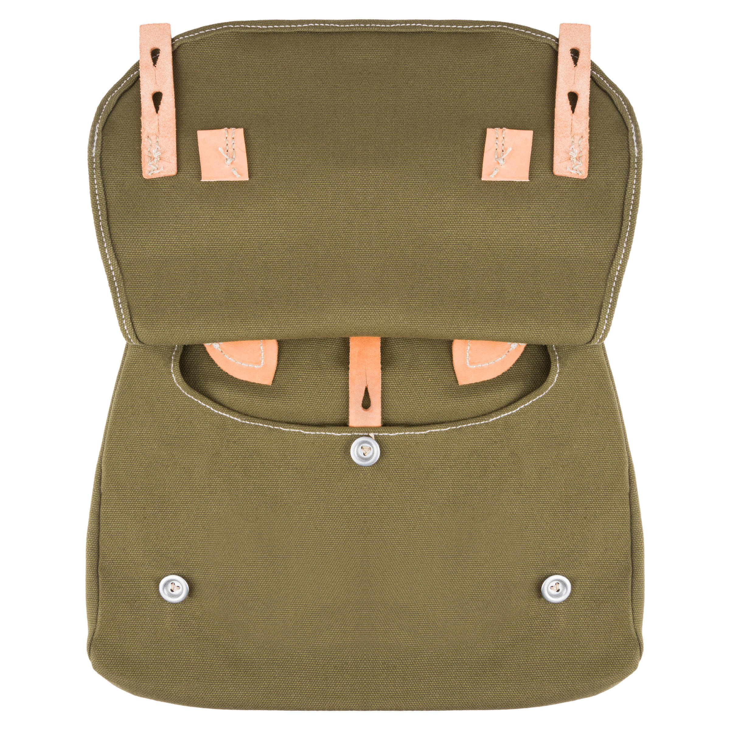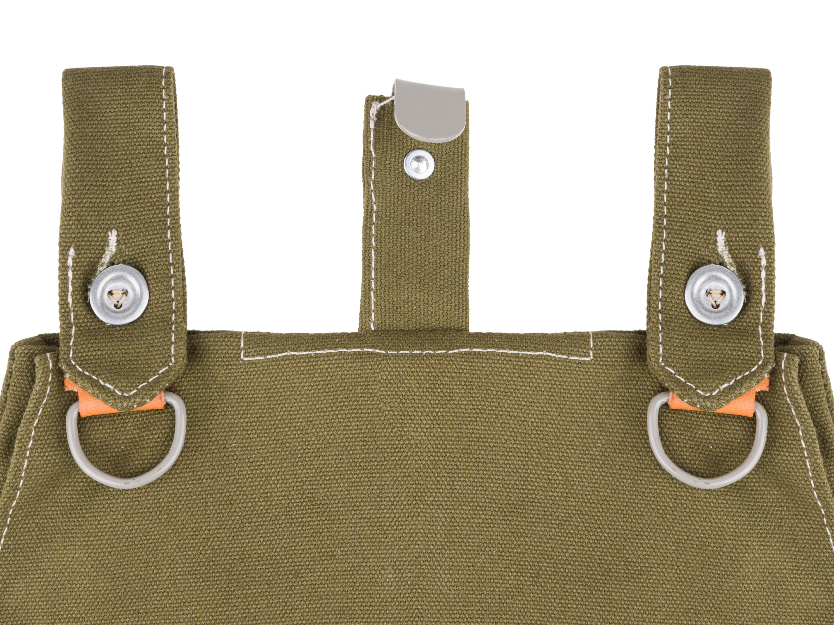Perfect repro of German M31 breadbag, made of green cotton canvas and leather made of smooth veg tanned undyed leather. Hardwares were from steel and painted for correct grey color. Buttons are aluminium.