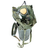 A faithful replica of a gas mask tensioner. The tensioner is made of a steel spring and aluminum form molds. The spring tightens the mask so that it does not deform during long-term storage. The tensioners were used when the mask was stored outside the container, i.e. most often when soldiers were in barracks.