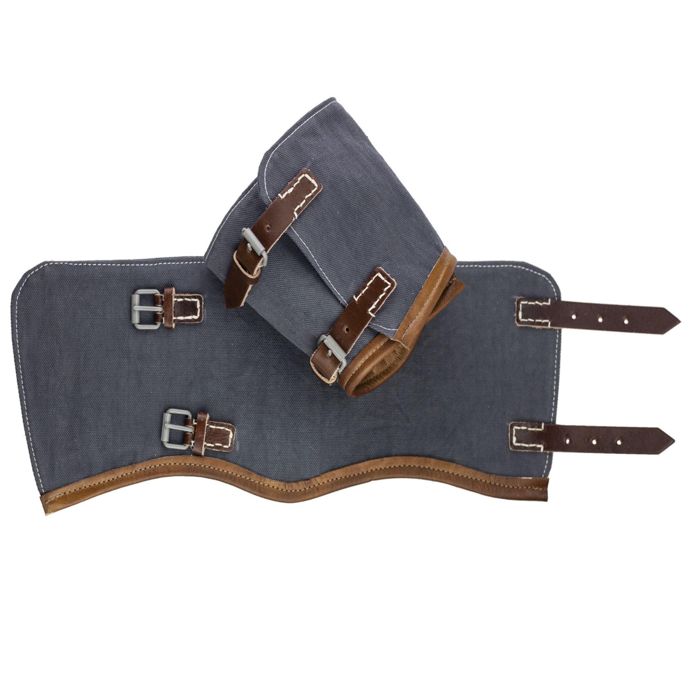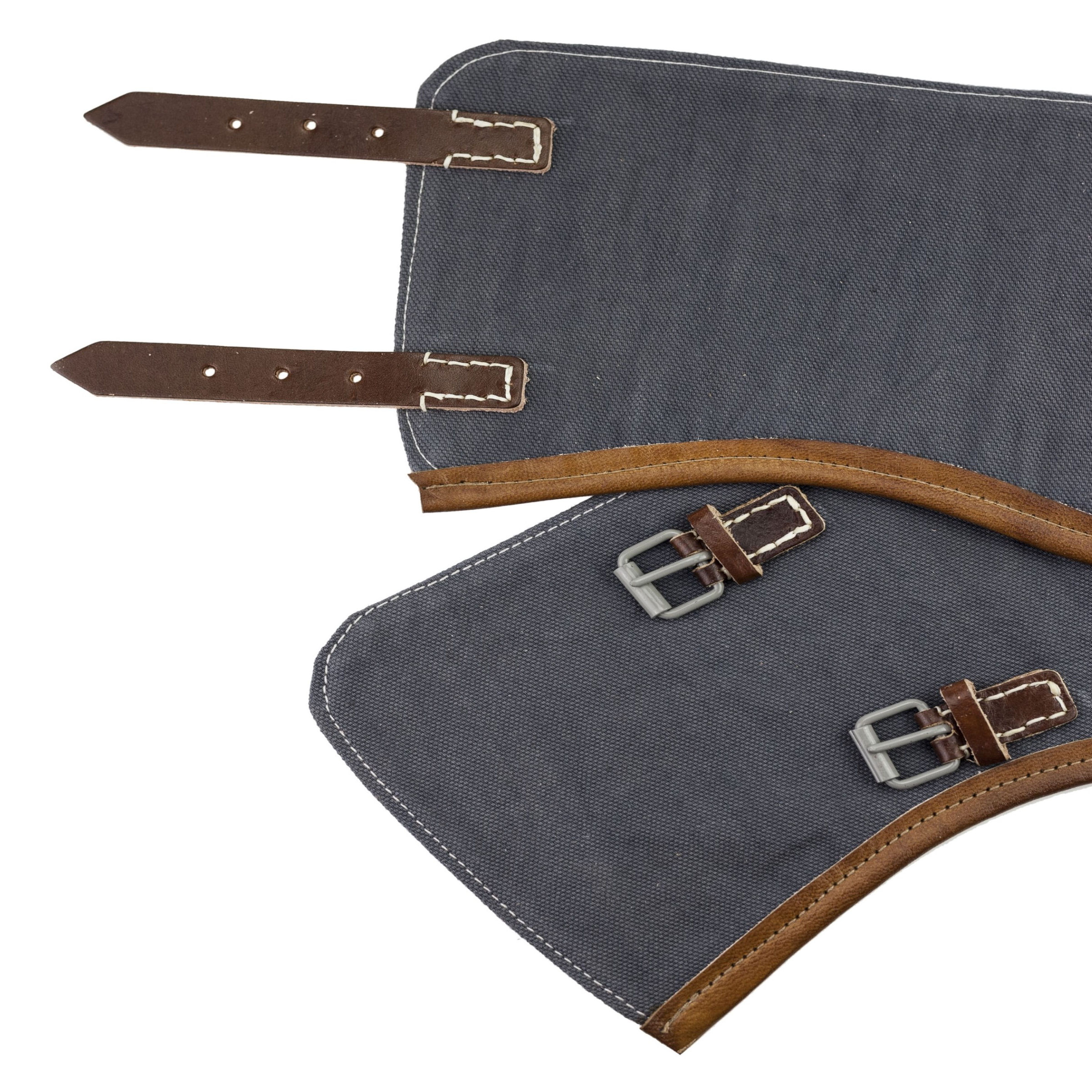 Replica of early war type German canvas gaiter. It is a replica of gaiters from the early years of the war - they are made of fabric in Blaugrau color. Buckles are made of steel, painted for proper grey color. Leather parts are made of smooth, brown natural leather.