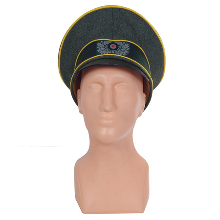 Perfect repro of the Wehrmacht Crusher in signal troops color - Zitronengelb. Cap with a leather visor. It's made by EREL - Robert Lubstein Militärmützenfabrik, which is placed in Germany. Cap has period-like maker markings, it's bacisally a period cap made nowadays. We strongly recommend buying such cap made by manufacturer with over 100 years of providing military headgear for German Army, also during World War I and World War II!