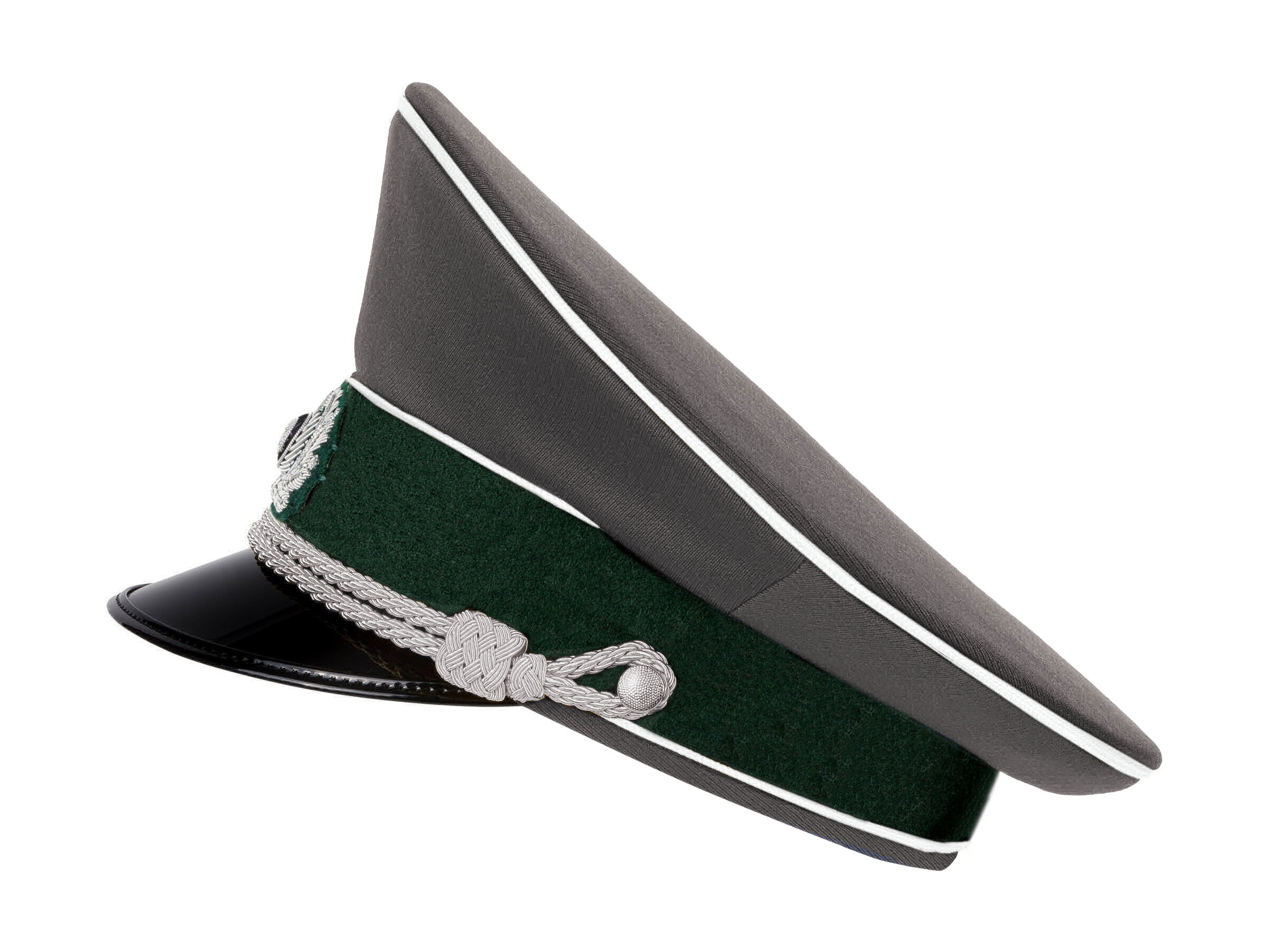 Perfect replica of infantry Wehmacht officer visor caps. Hand woven cockade included and with white piping. This beautiful cap is made by EREL - Robert Lubstein Militärmützenfabrik, famous German cap maker with over 110 years of traditions. Cap has all the EREL markings, 100% identical to period ones. We highly recommend You to buy such replica from maker which produced caps for German Army during World War I and World War II.