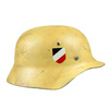 Perfect replica of M40 helmet. Made of steel, weight and dimensions as in original helmets. Painted in Deutsche Afrika Korps camouflage - sand color paint with texturing. Heavily aged version - helmet has dents, paint losses or scratches. Liner is made of natural leather, included.
