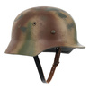 Perfect replica of M40 helmet. Made of steel, weight and dimensions as in original helmets. Painted in Normandie camopuflage - sand color mixed with green. Heavily aged version - helmet has dents, paint losses or scratches. Liner is made of natural leather, included.