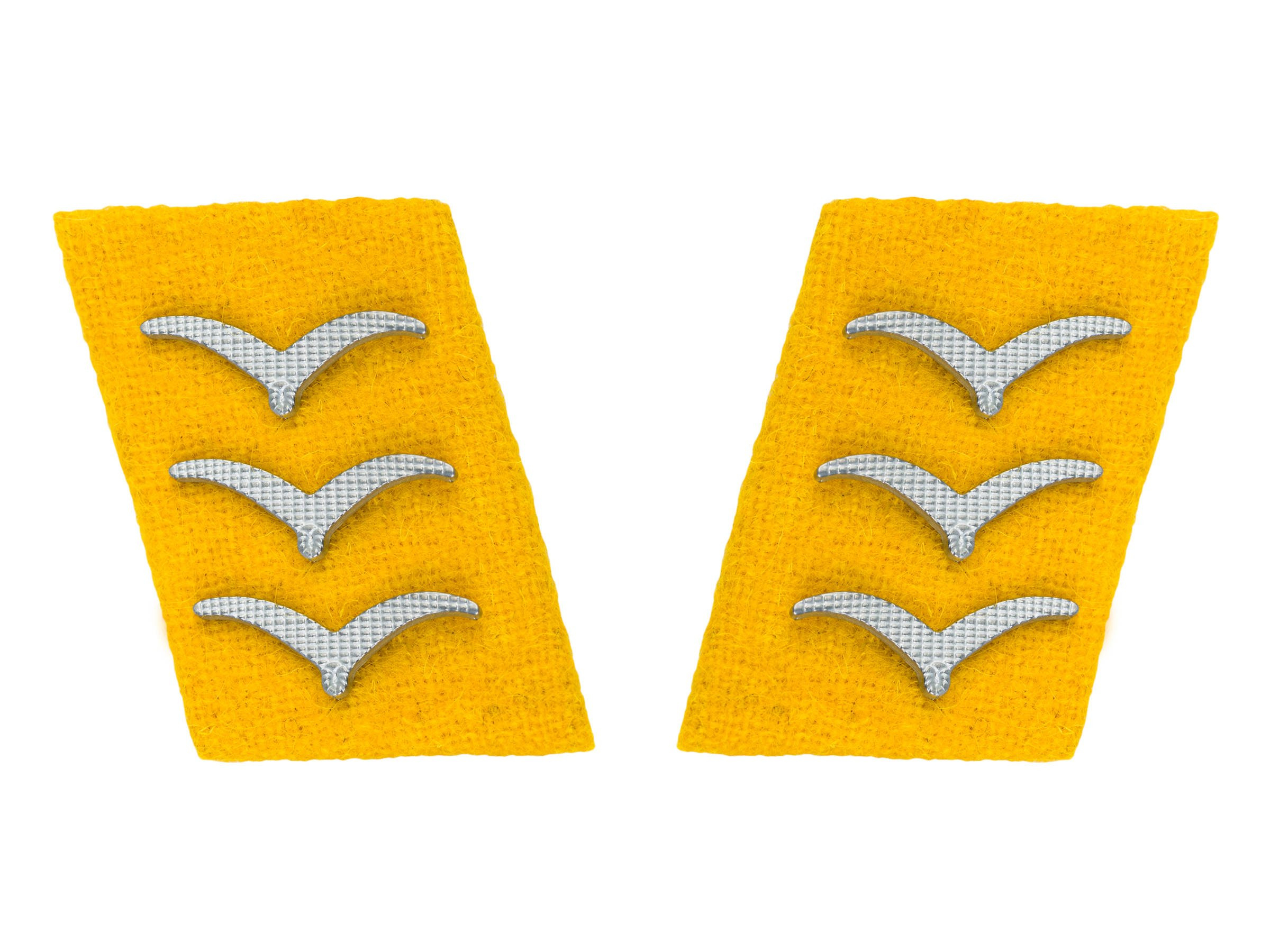 Perfect replica of Luftwaffe collar tabs in rank of Obergefreiter (corporal). Tabs are made of wool, stiffened with cardboard, dimensions as in the the original.