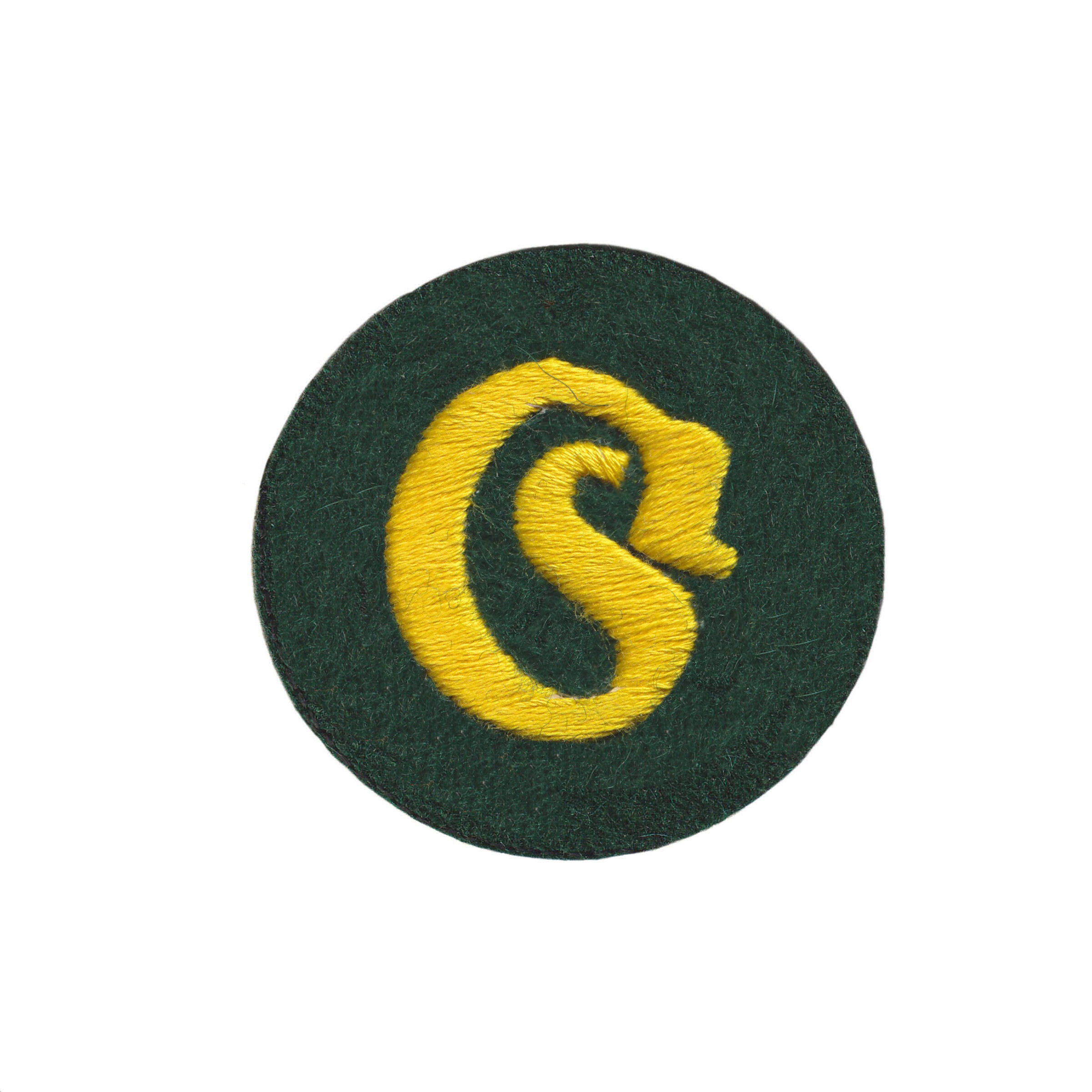A perfect replica of military specialization patch for soldiers serving in the Heer. The patch is embroidered with yellow cotton thread on a dark green cloth backing.