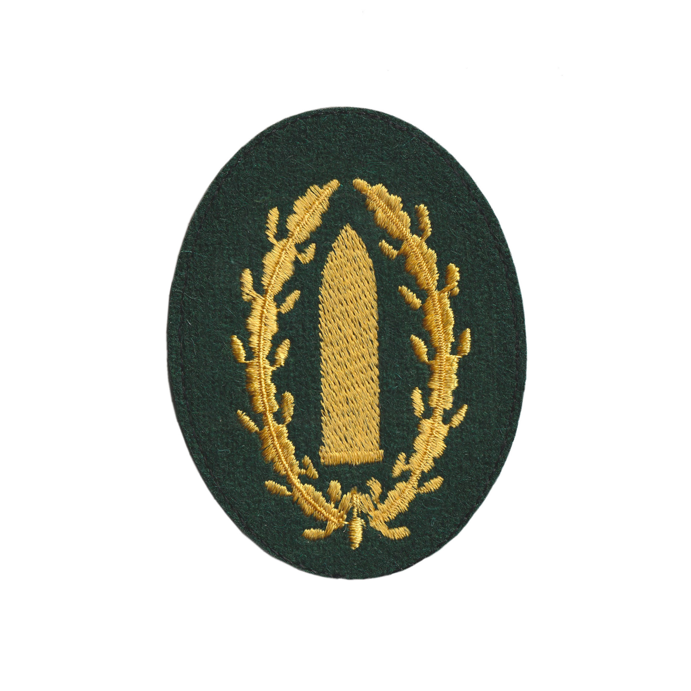 A perfect replica of military specialization patch for soldiers serving in the Heer. The patch is embroidered with yellow cotton thread on a dark green cloth backing.