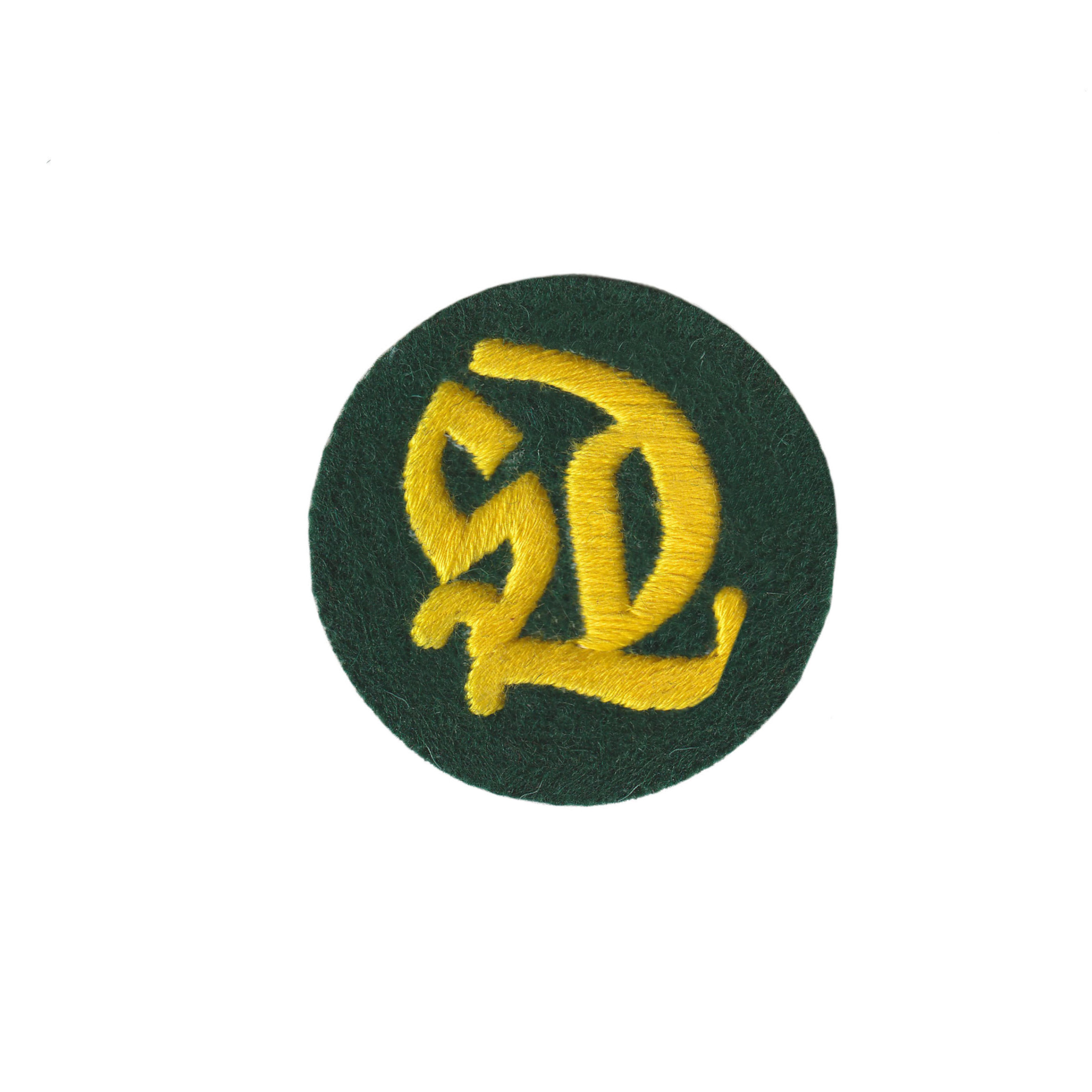 A perfect replica of military specialization patch for soldiers serving in the Heer. The patch is embroidered with yellow cotton thread on a dark green cloth backing.