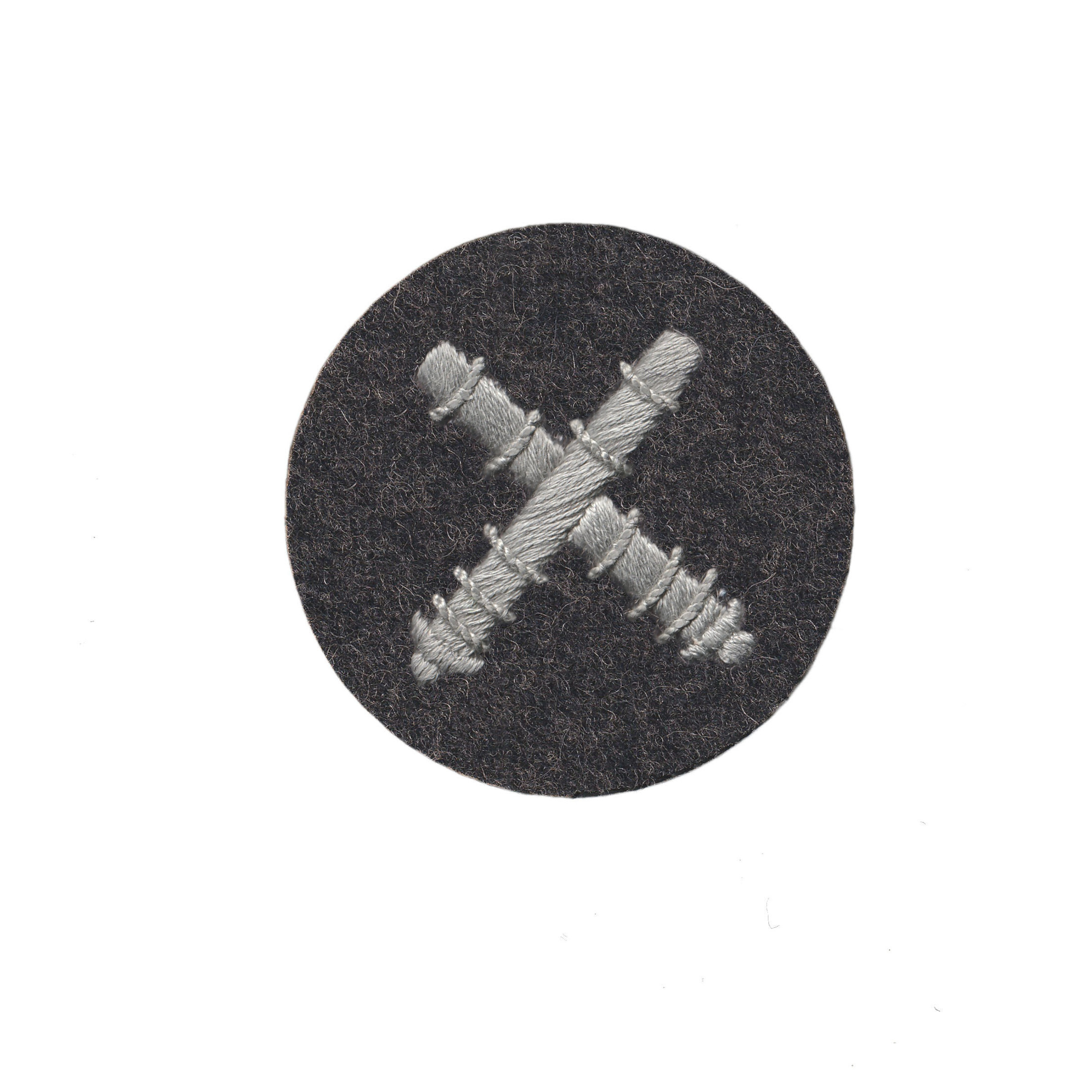 A perfect replica of military specialization patch for soldiers serving in the Luftwaffe. The patch is embroidered with silver-grey cotton thread on a blaugrau cloth backing.