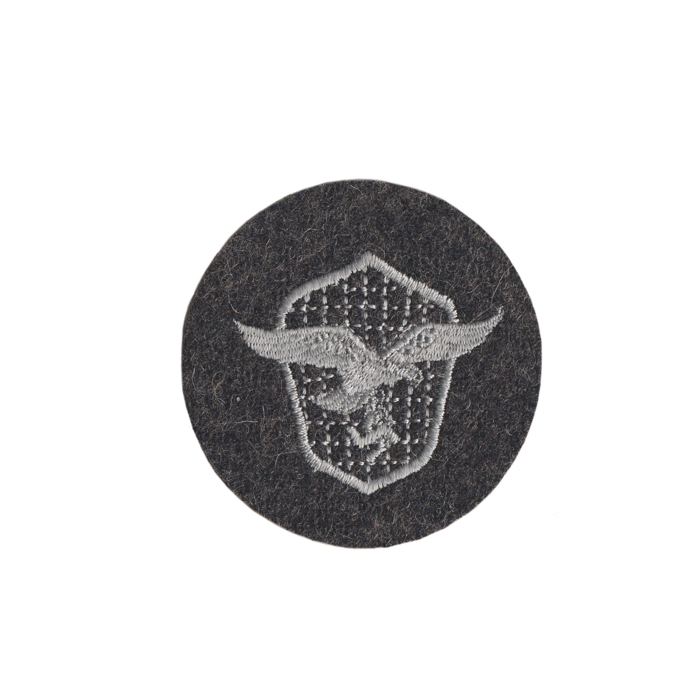 A perfect replica of military specialization patch for soldiers serving in the Luftwaffe. The patch is embroidered with silver-grey cotton thread on a blaugrau cloth backing.