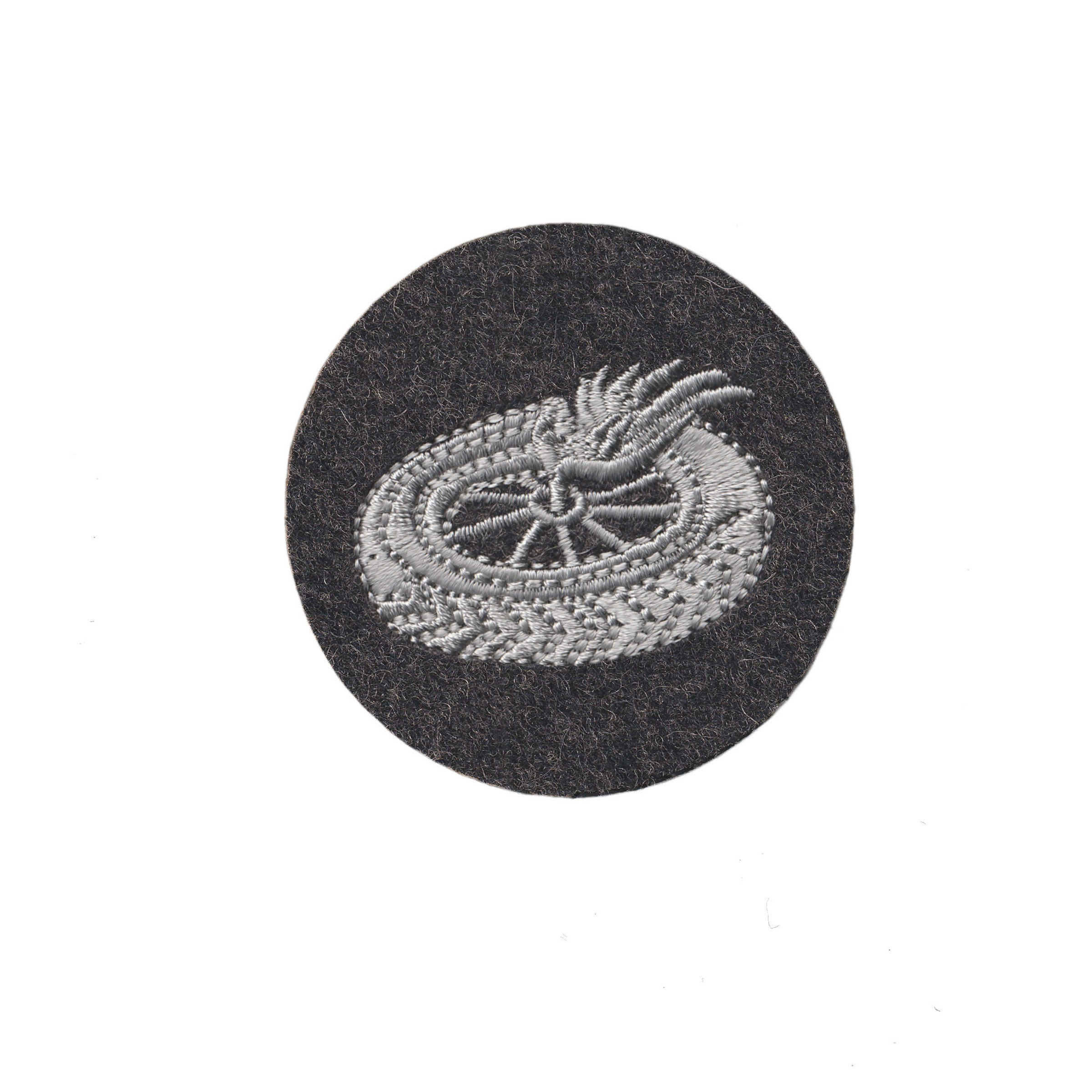 A perfect replica of military specialization patch for soldiers serving in the Luftwaffe. The patch is embroidered with silver-grey cotton thread on a blaugrau cloth backing.