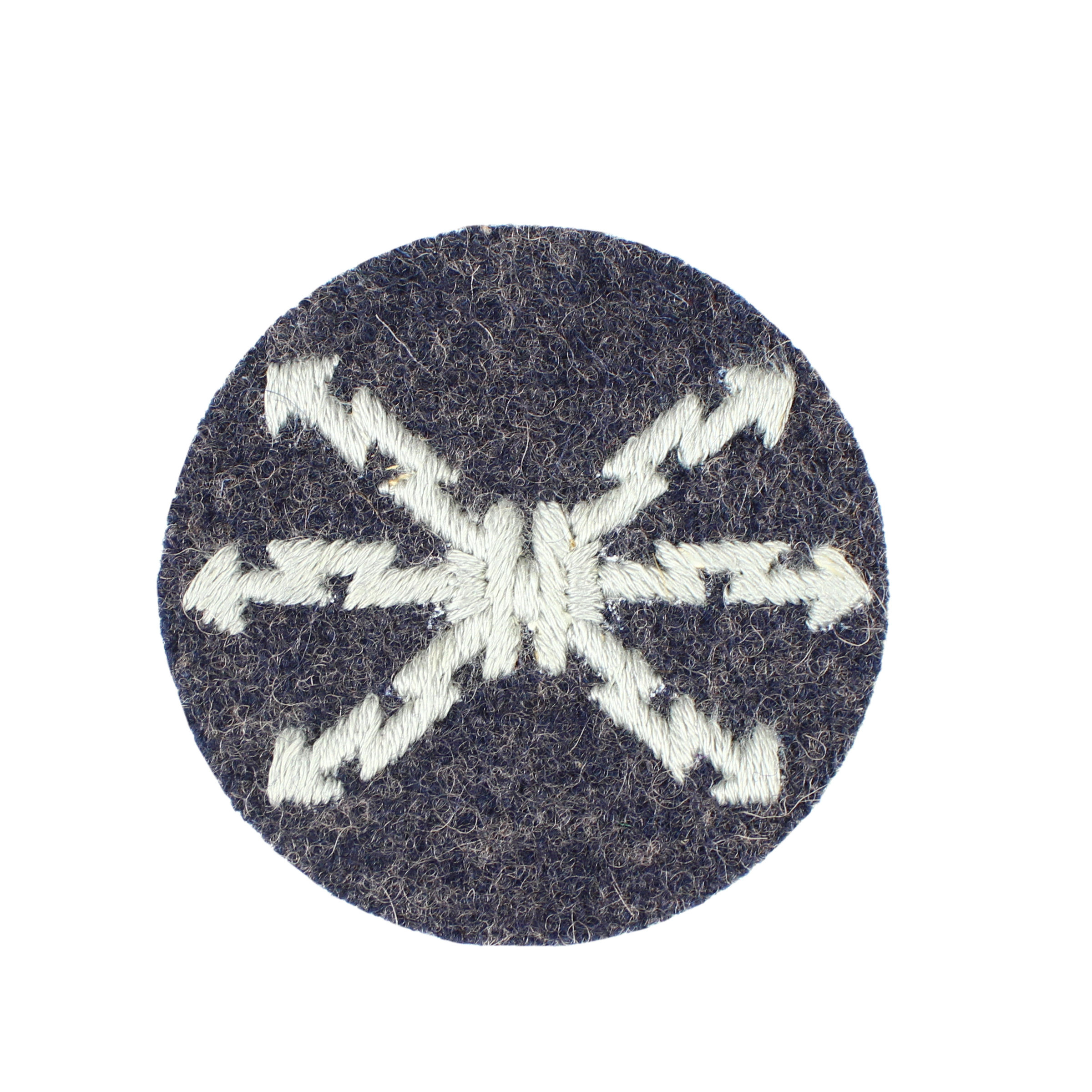 A perfect replica of military specialization patch for soldiers serving in the Luftwaffe. The patch is embroidered with silver-grey cotton thread on a blaugrau cloth backing.
