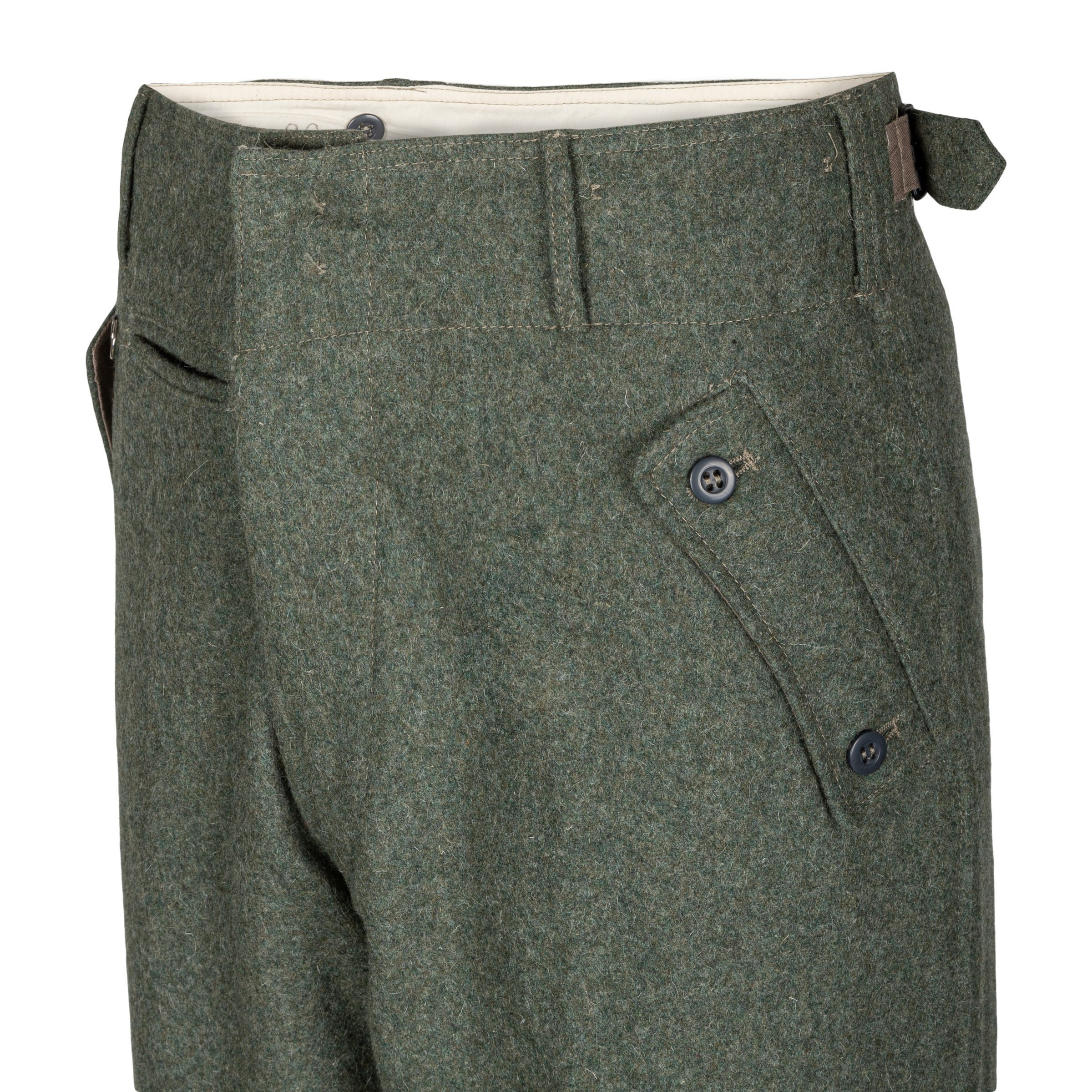Perfect replica of Waffen-SS self-propelled artillery crews uniform trousers - Sturmgeschutzhose. Made of perfectly reproduced field grey wool in proper cut. Cut, fabric type and color are as close as it possible to original. Premium-class replica - branded by Nestof®!