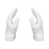 A replica of summer parade gloves. Made of natural white full-grain leather. The outer side of the gloves features three stitching lines, and the wrist cuff fastens with a snap. The gloves are very soft to the touch.