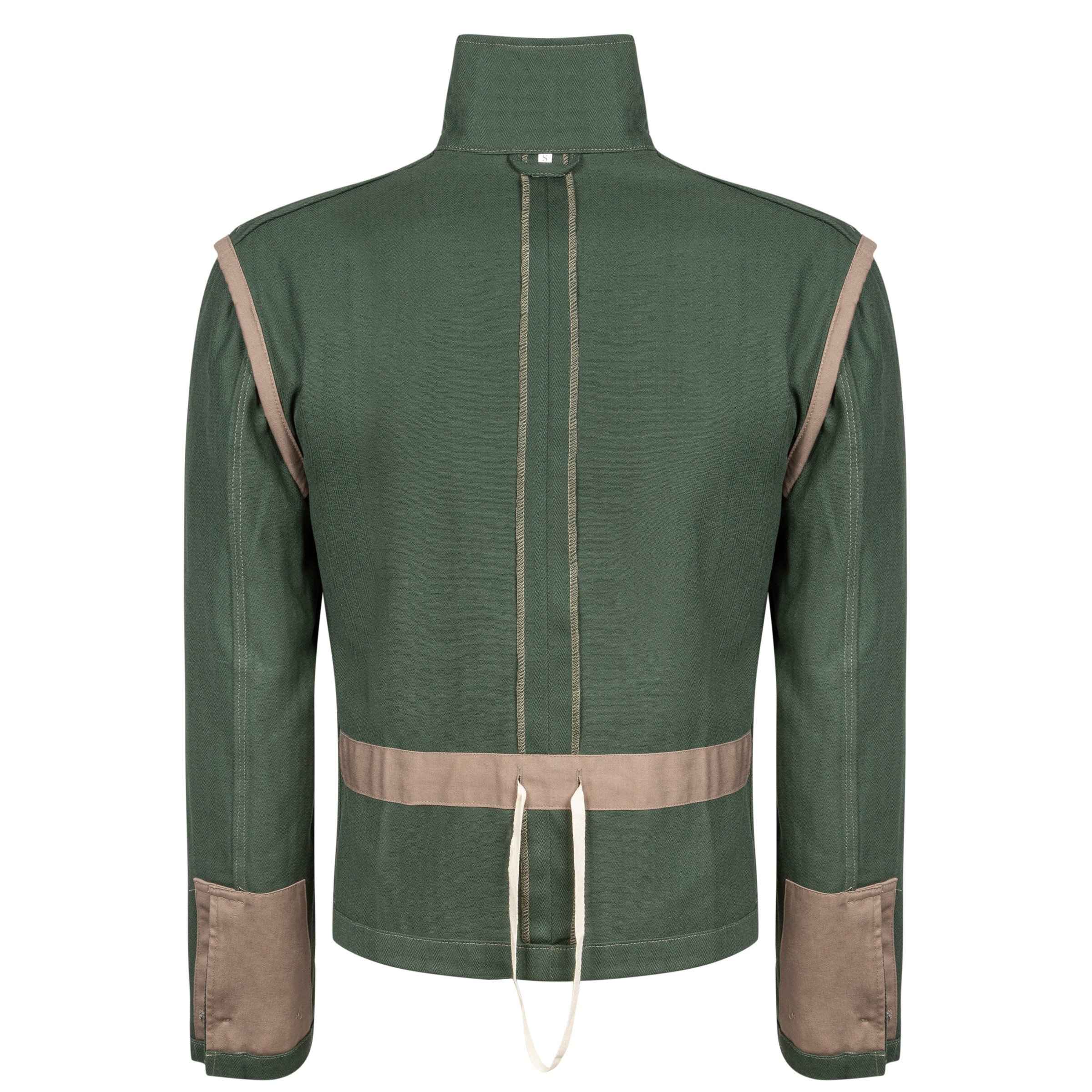 Perfect replica of summer HBT - Sturmgeschutzbluse. Made of perfectly recreated HBT fabric in dark green color. Buttons are made of zinc. Cut with big frontal pocket. Cut, fabric type and color are as close as it possible to original. Shoulder boards has red (artillery) piping, so called "waffenfarbe". Branded by Nestof®!