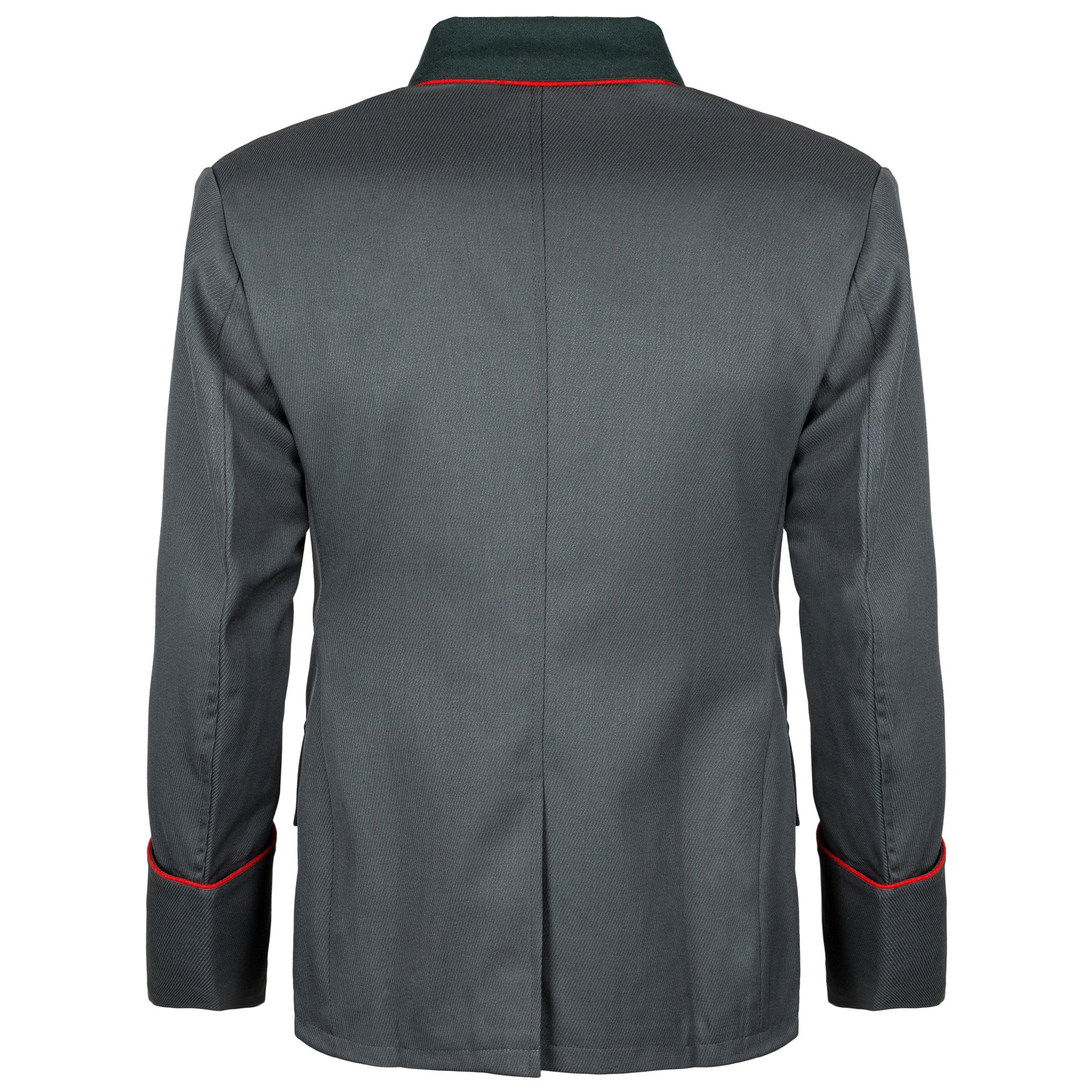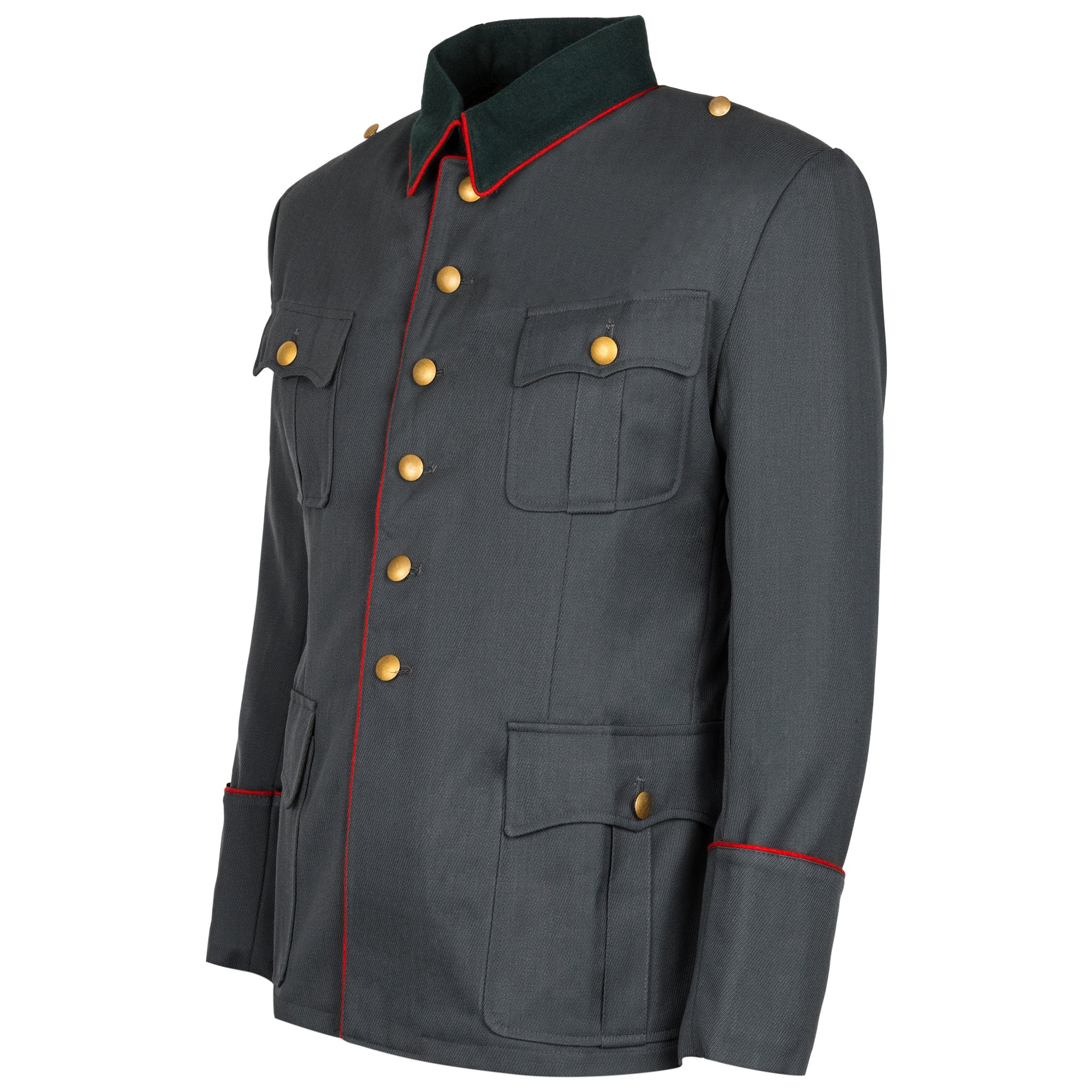 Museum-quality reproduction of Feldbluse für Generale - tunic for generals. Made of field grey gabardine, correct golden pebbled buttons installed, proper lining, sword hook and with red trim. Cut, fabric type and color are as close as it possible to original. Branded by Nestof®!