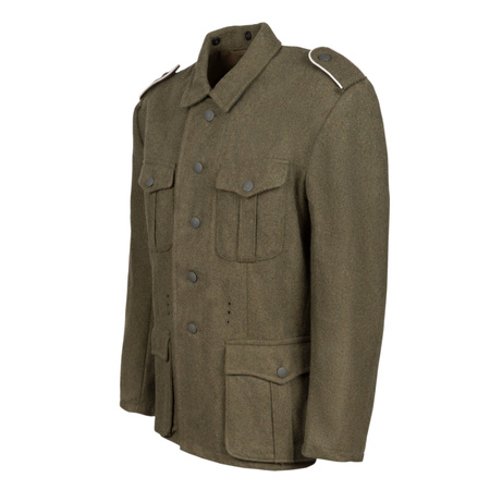 Replica of M40 field tunic for Wehrmacht and Waffen-SS. Made of wool with cotton liner. Tunic has 4 pockets, 5 buttons, additional inside pocket for first aid pouch. Field-gray collar is the main difference beetween this model and earlier one. Cut, fabric type and colour are as close as it possible to original. Shoulder boards in waffenfarbe of infantry (white) included.