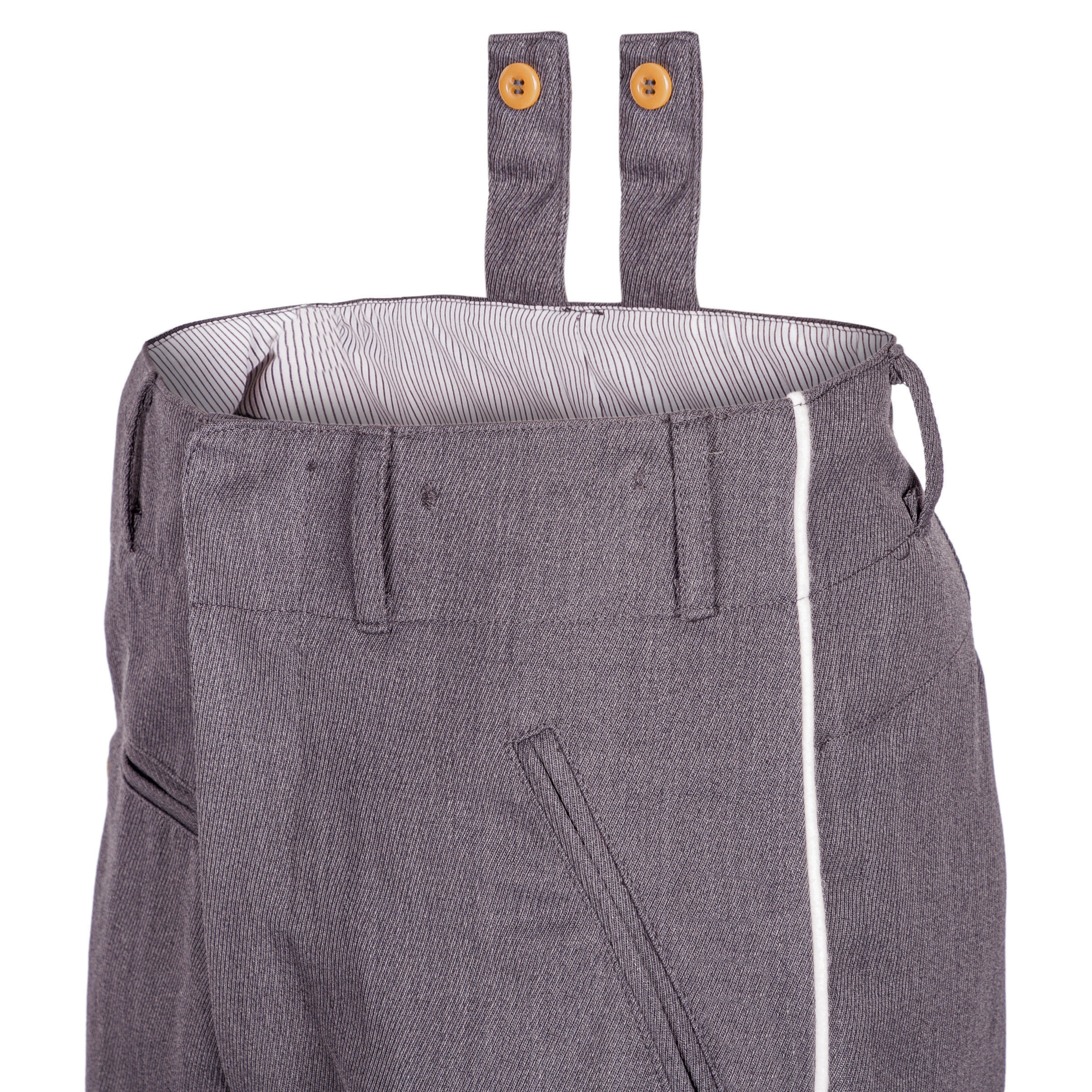 Perfect replica of German Wehrmacht parade trousers. Made of gabardine with trimmed with white piping on the sides. Cut, fabric type and colour are as close as it possible to original. Highly recommended -branded by Nestof®.