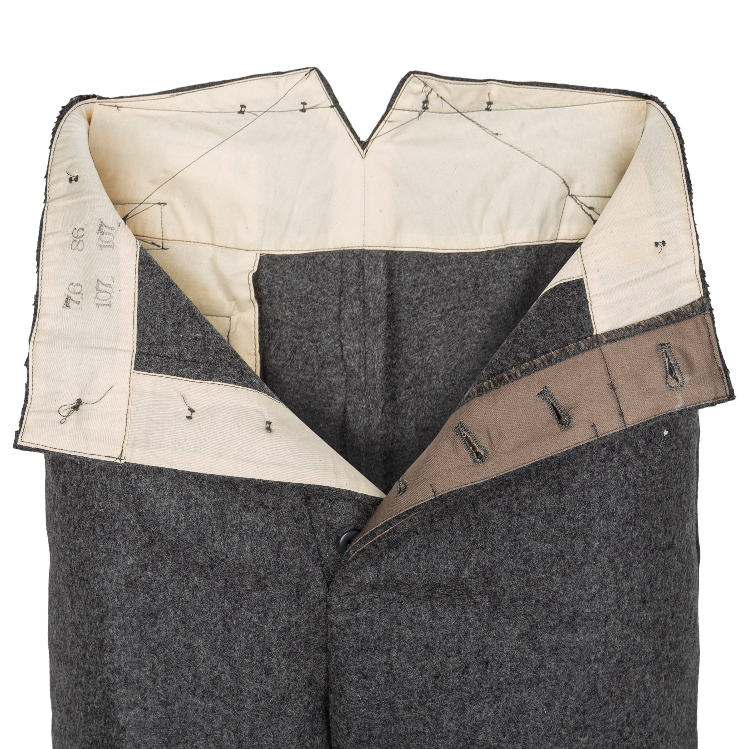 Perfect replica of M37 German trousers. These are made of stone grey thick wool in Steingrau color. Trousers have straight legs Cut, fabric type and color are as close as it possible to original trousers.