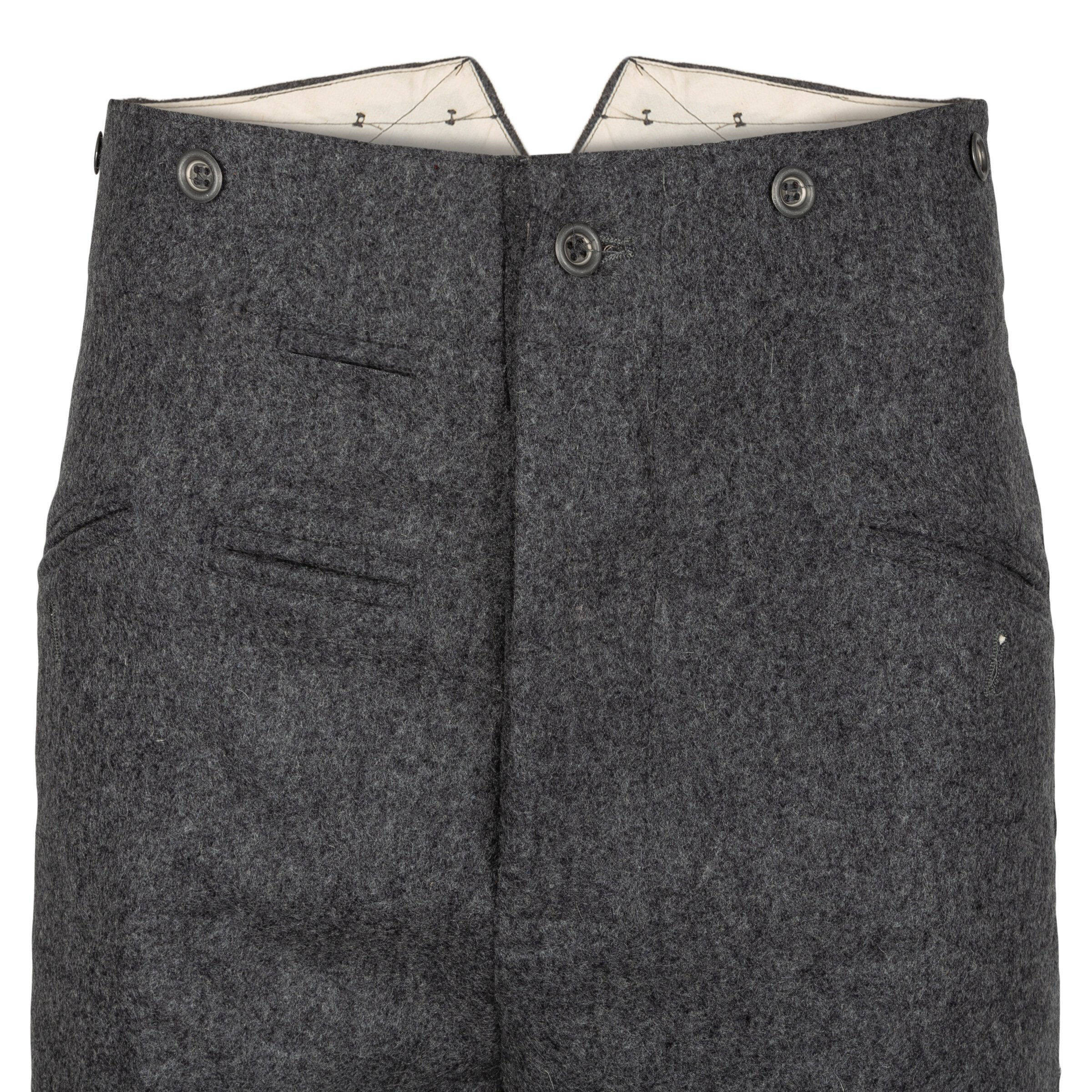 Perfect replica of M37 German trousers. These are made of stone grey thick wool in Steingrau color. Trousers have straight legs Cut, fabric type and color are as close as it possible to original trousers