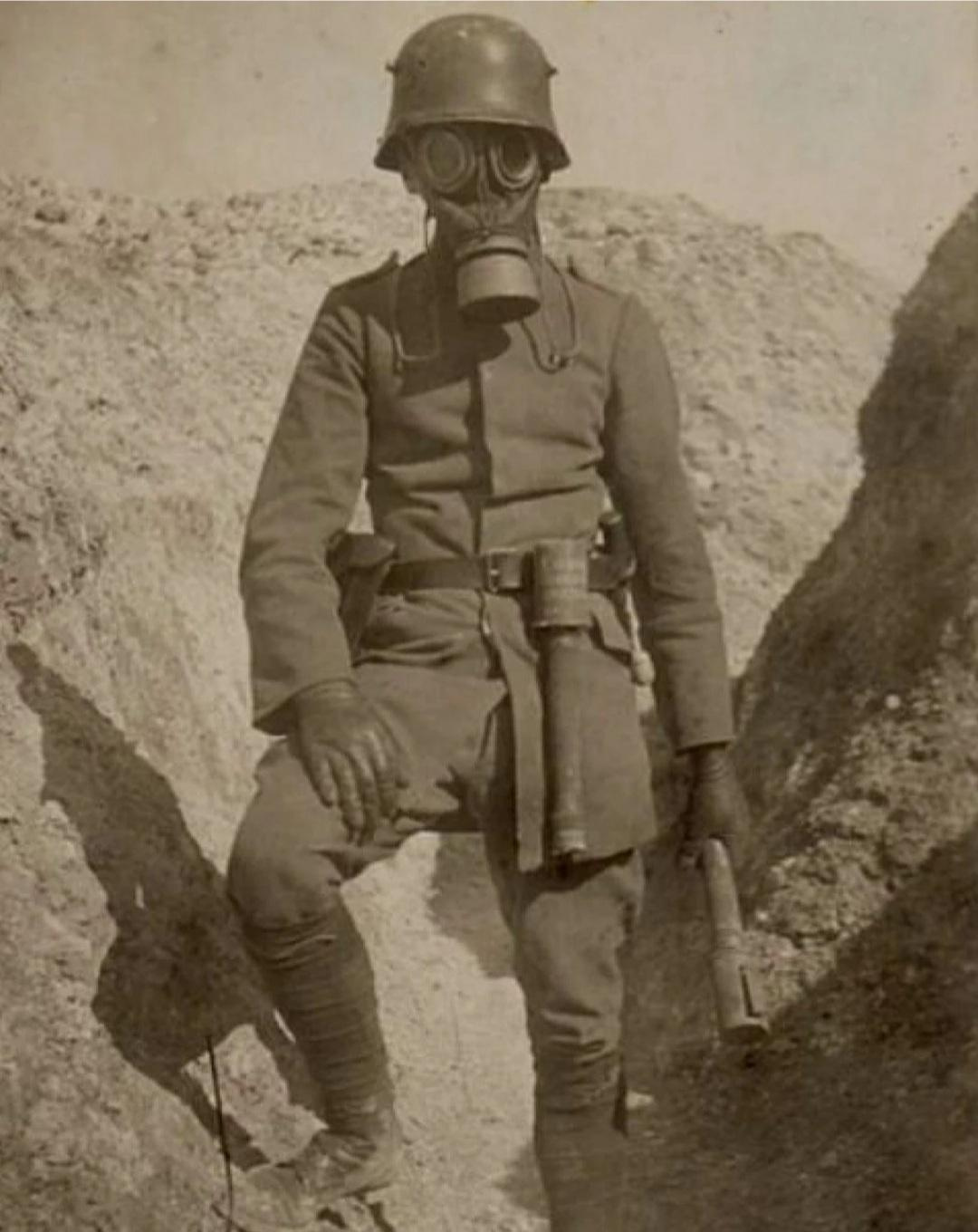 Such gas masks were used in German army in 1917-1918, later in some Polish units during Polish-Soviet war.