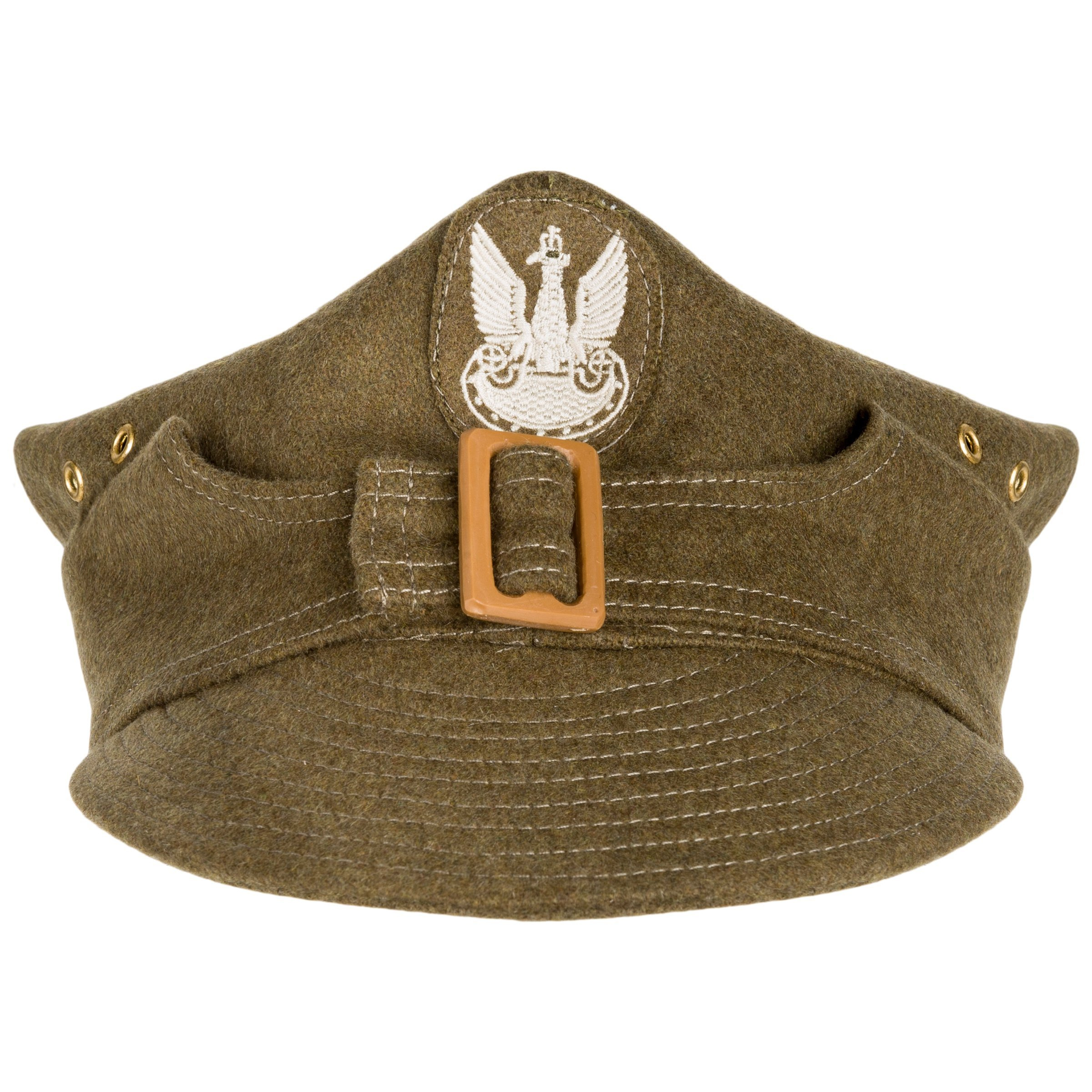 A perfect replica of the Polish four-cornered cap "rogatywka", model 1937. The cap is made of woll in "Polish khaki" color, with brass ventilation hole fittings, a leather sweatband, and a cotton lining. The slider is made of a material imitating Bakelite. The set includes an eagle embroidered with natural thread, already sewn onto the cap. The lining inside cap is made of black fabric. We definitely recommend it - a top-shelf replica, manufactured by Nestof®!