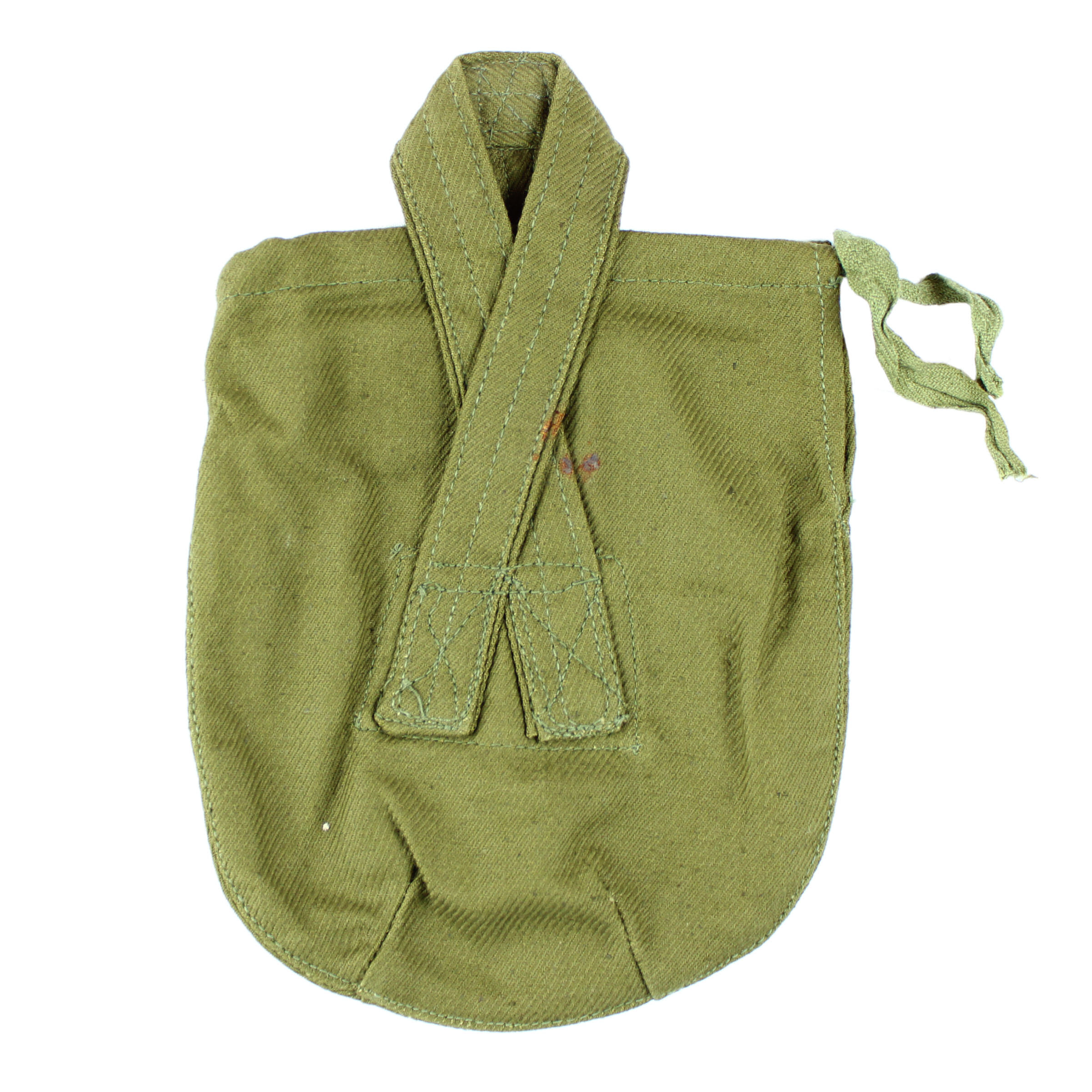Soviet canteen cover. Post-war production. The cover is made of cotton fabric (various weaves of HBT, Twill, etc. are available), attached to the belt with fabric ribbons fastened with a button. The cover also closes with a drawstring. Ideal for use as a wartime-pattern canteen cover used by the RKKA forces.