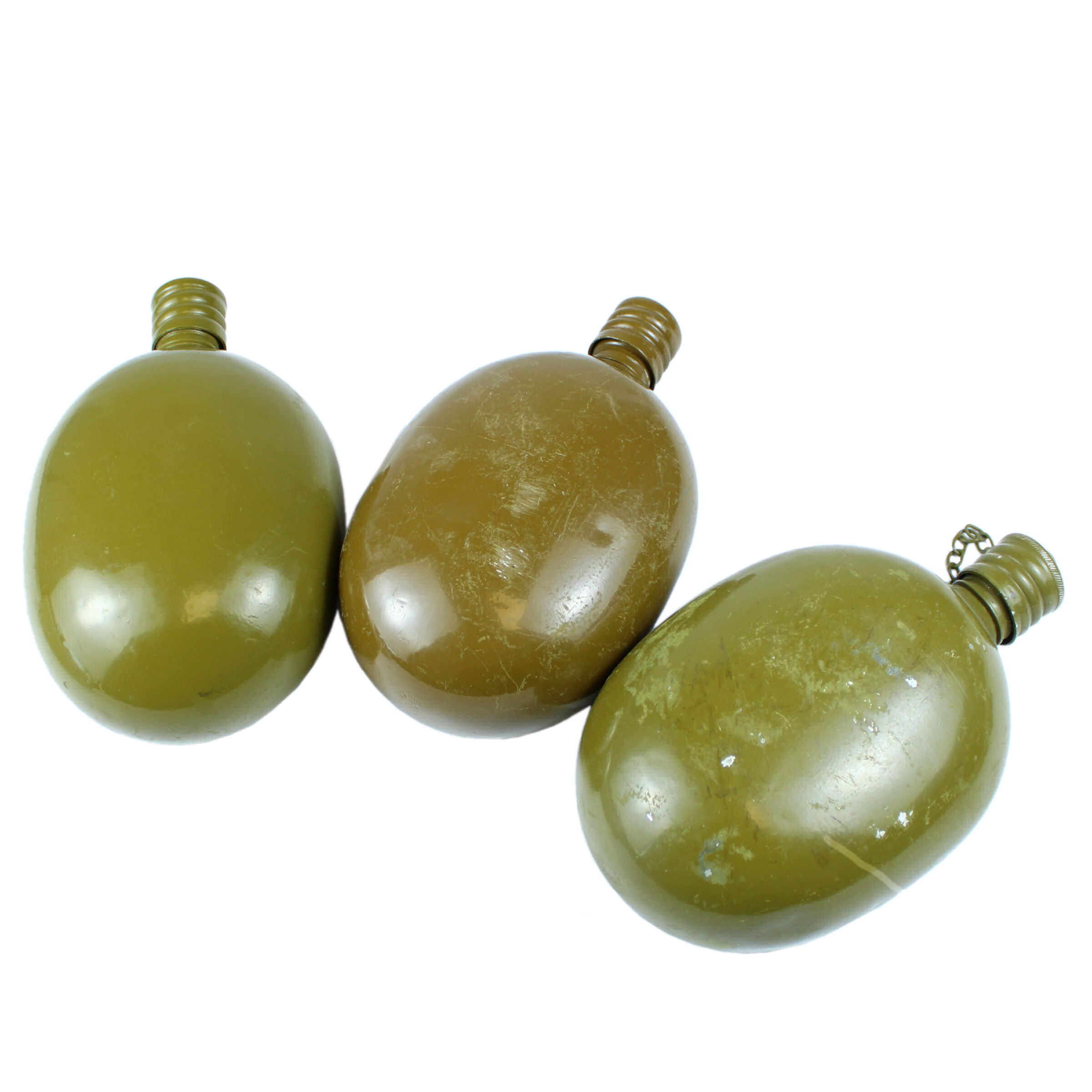 Soviet military surplus aluminum canteen, war period pattern. Canteens are sold without covers - they can be purchased separately. Post-war production flasks may have different markings. Photos show a sample canteen. Canteens are not intended for drinking water.
