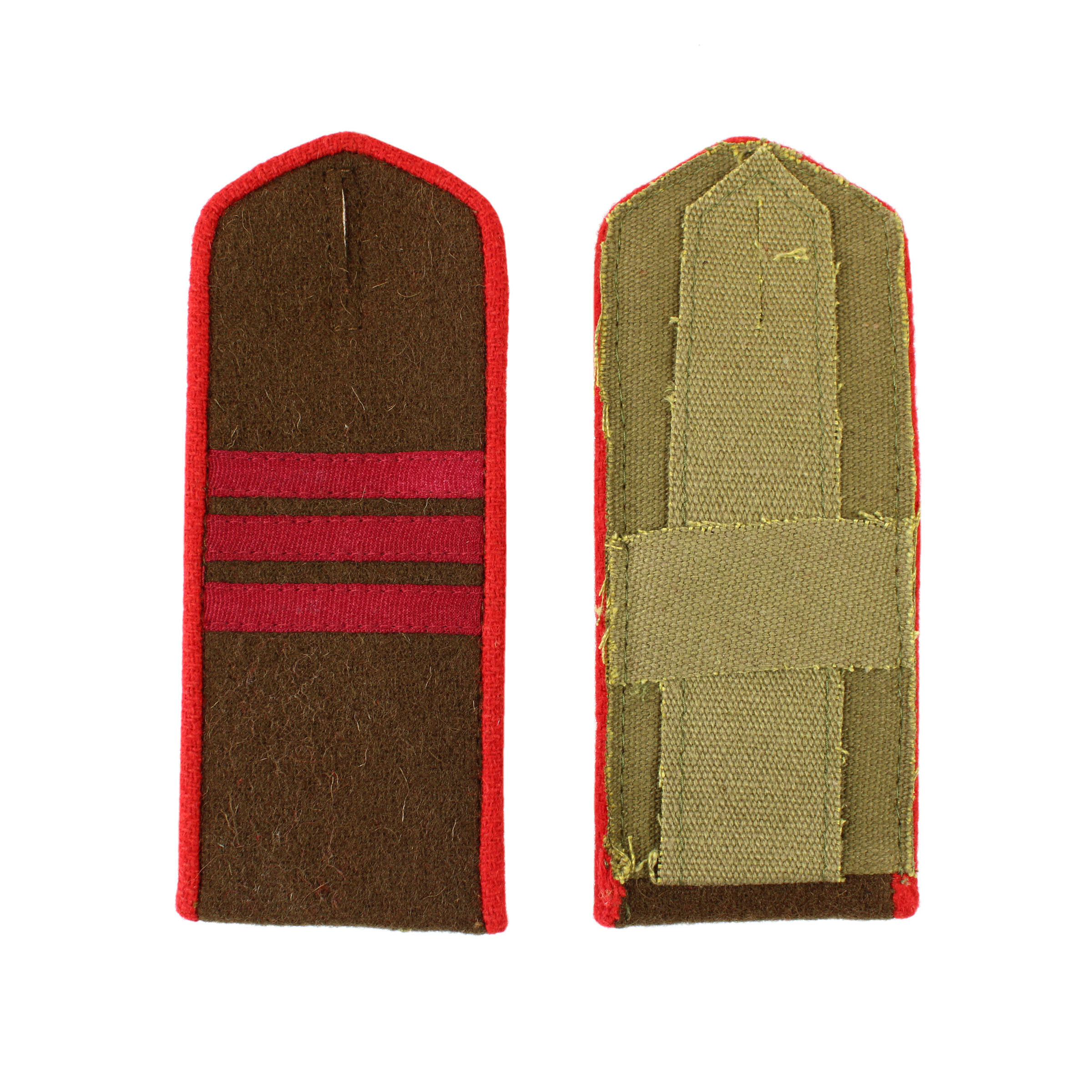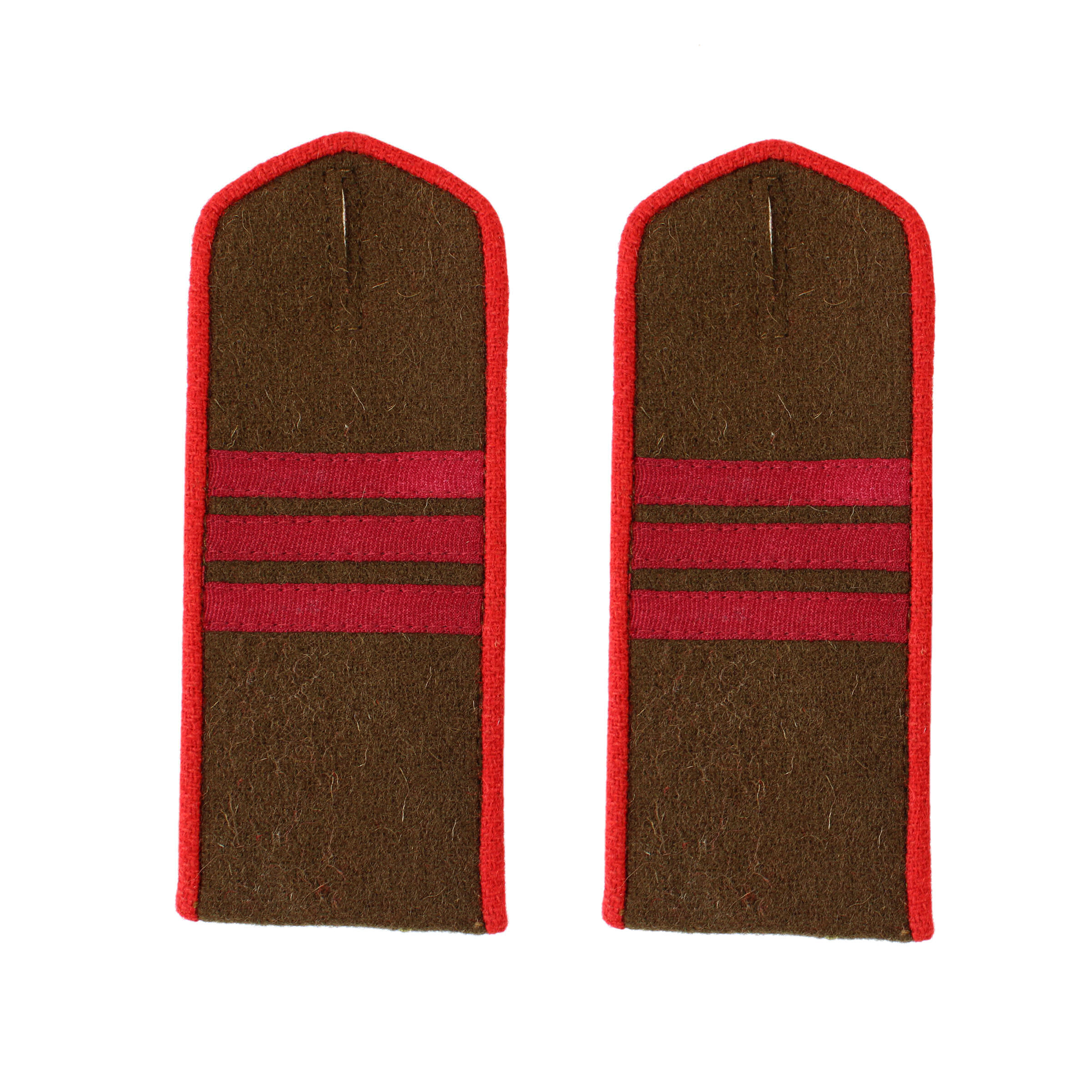 Perfect replica of field M1943 infantry "serzhant" (sergeant) shoulder boards! These are made of khaki wool, piping is carmin-red. Price for 1 pair.