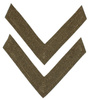 A faithful replica of the British Army chevrons for the rank of Lance Corporal. Made from embroidered cotton ribbon sewn onto a khaki cloth backing. These chevrons were used by the British Armed Forces from 1920 to 1953. The chevrons were sewn onto the sleeves of the uniform tunic.