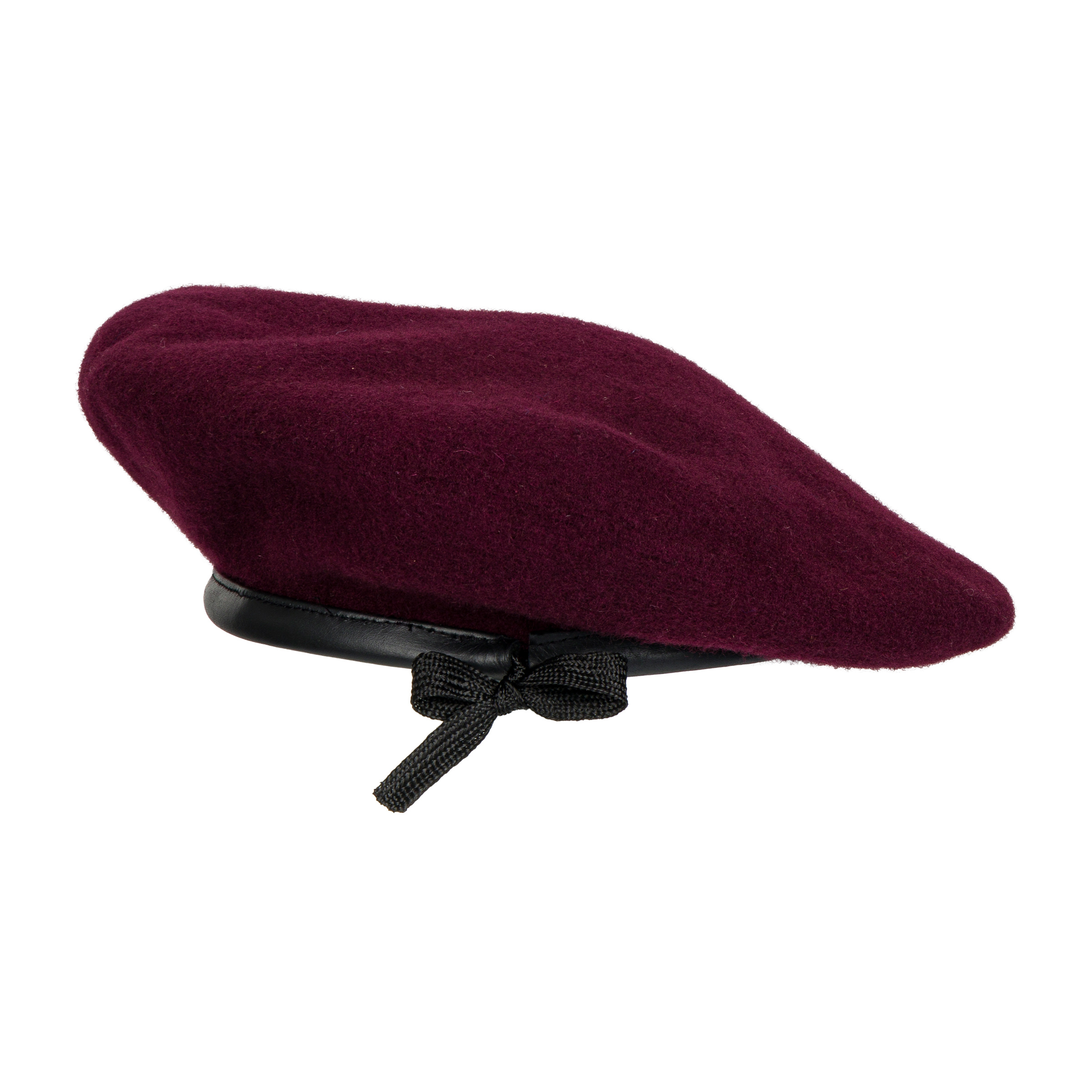 A faithful replica of the famous British woolen "maroon" beret used by airborne troops. The outer part is made of wool cloth, while the inside is lined with a light cotton fabric. The lower brim is trimmed with leather piping. The upper part of the beret has two eyelets to improve ventilation. There is a small stiffener in the rim for attaching emblems to the beret.