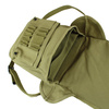 A replica of the American M1938 map case. This version does not include a map insert. It is made of cotton fabric in the OD3 color scheme. The flap closes with two Lift-Dot snaps. Inside, the main compartment is divided into three smaller compartments. The back of the bag is reinforced, while the front features a small pocket with a sewn-in folded strap for writing utensils. A detachable shoulder strap is included.