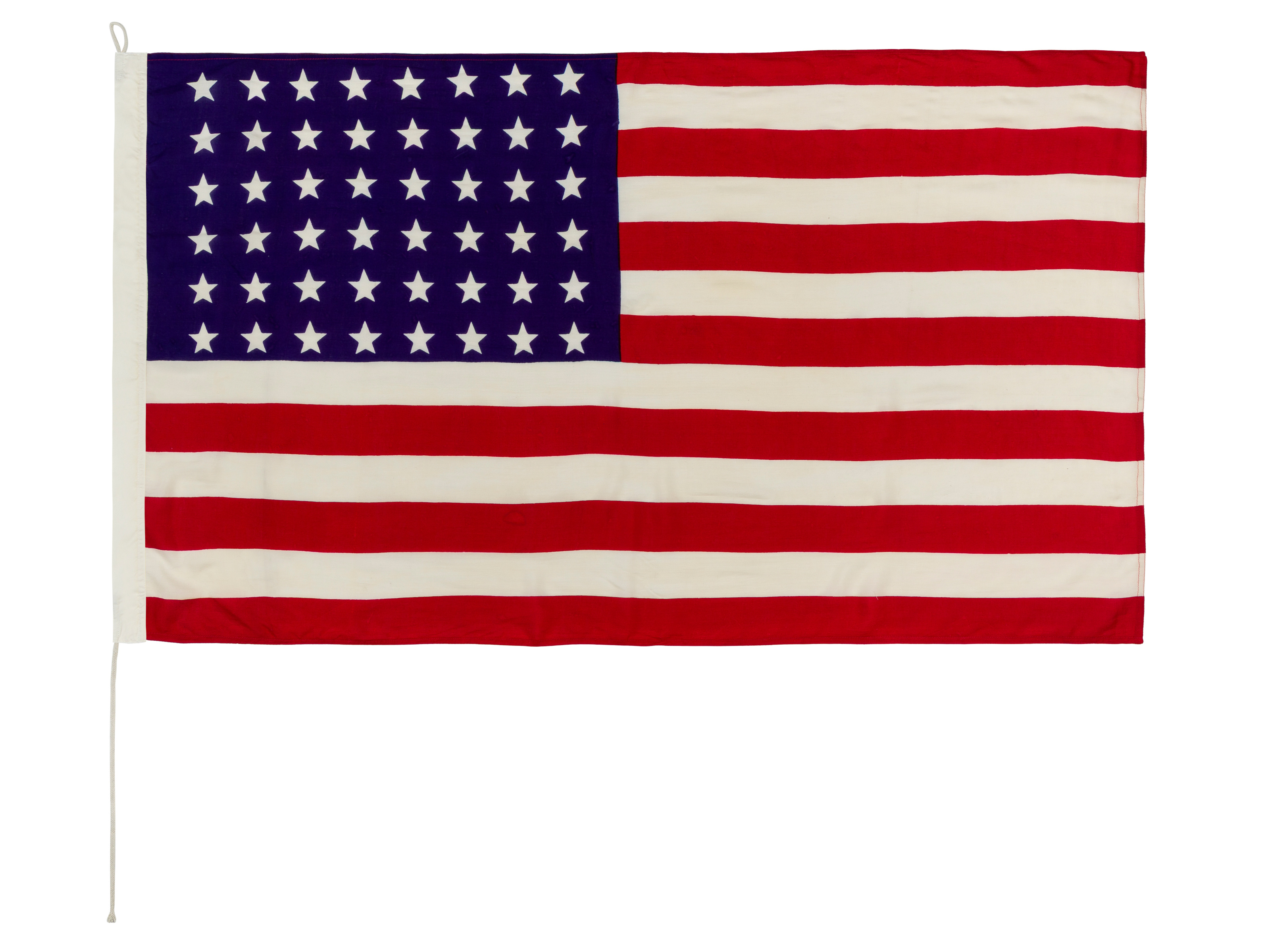A replica of the American national flag in a printed version with 48 stars. Made on thin cotton fabric.