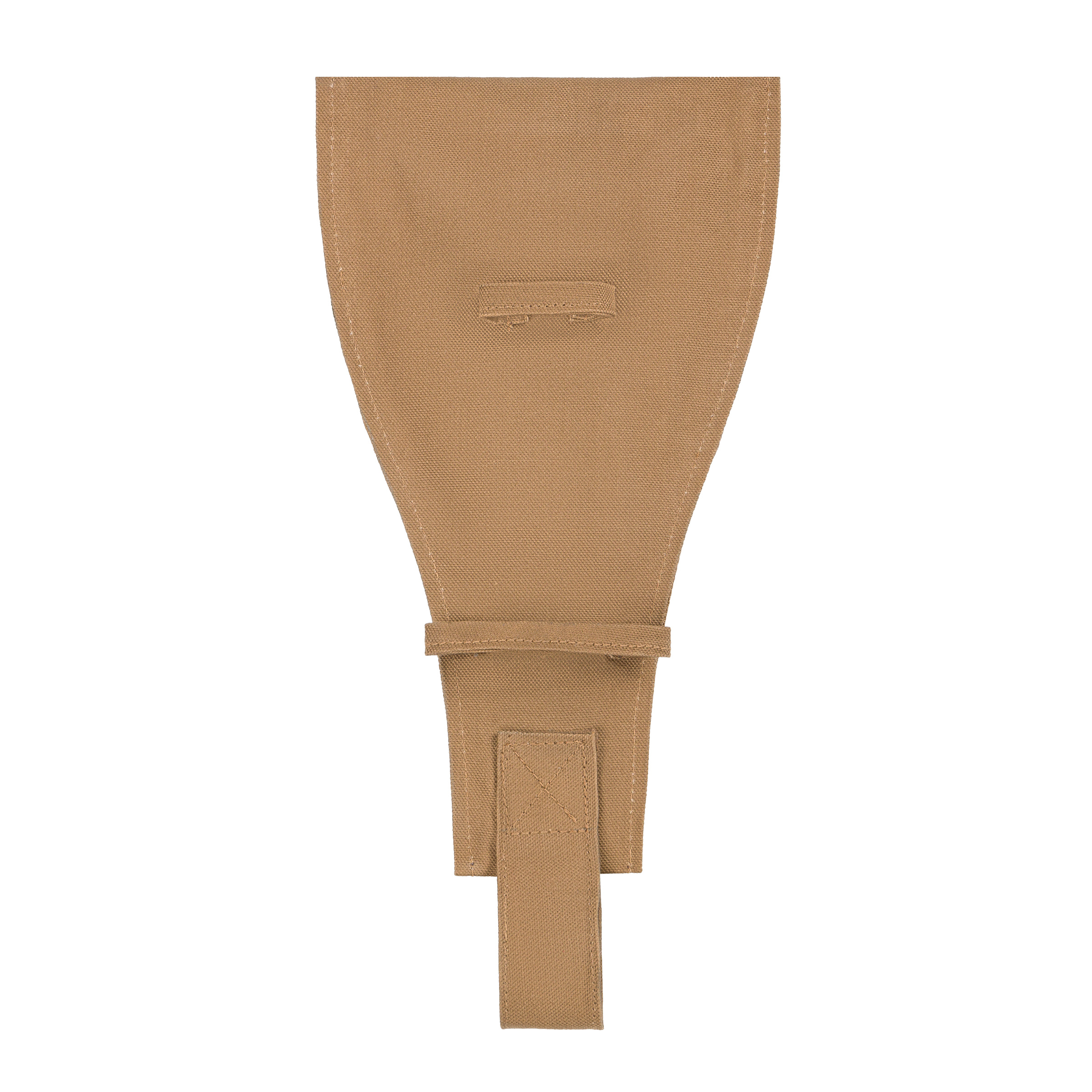 A replica of a drum magazine pouch for the P08 pistol and MP18 submachine gun. The replica is made of dark beige cotton canvas. The leather inserts are made of natural leather dyed brown. The buttons are aluminum, while the remaining fittings are made of steel.