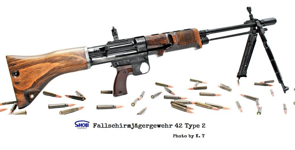 Perfectly made replica of Fallshirmjägergewehr 42 rifle, this is an senocd type of this weapon. It's full-size and functional, made of metal with frontal bed of wood, without any sintetic materials. Each replica has its own individual numbers as well as military receipt markings (Waffenamt). The ability to reload the chamber and fire a dry shot, the safety catch and fire selector operating in the same way as a real gun only adds to the feeling of holding a real weapon in your hand. The replica has a removable, functional magazine, which can be loaded with non-combat cartridges. The loaded magazine can be attached to the rifle and reloaded, and also the cartridge can be removed from the replica chamber later. The replica can be disassembled. The set includes: replica, magazine, packaging with ten cartridges (non combat), instruction manual, cardboard box - these are integral parts of the product. Japanese production - replicas are made by the renowned company Shoei. Replicas are devoid of any weapon characteristics within the meaning of the Weapons and Ammunition Act - and can be purchased without a permit.