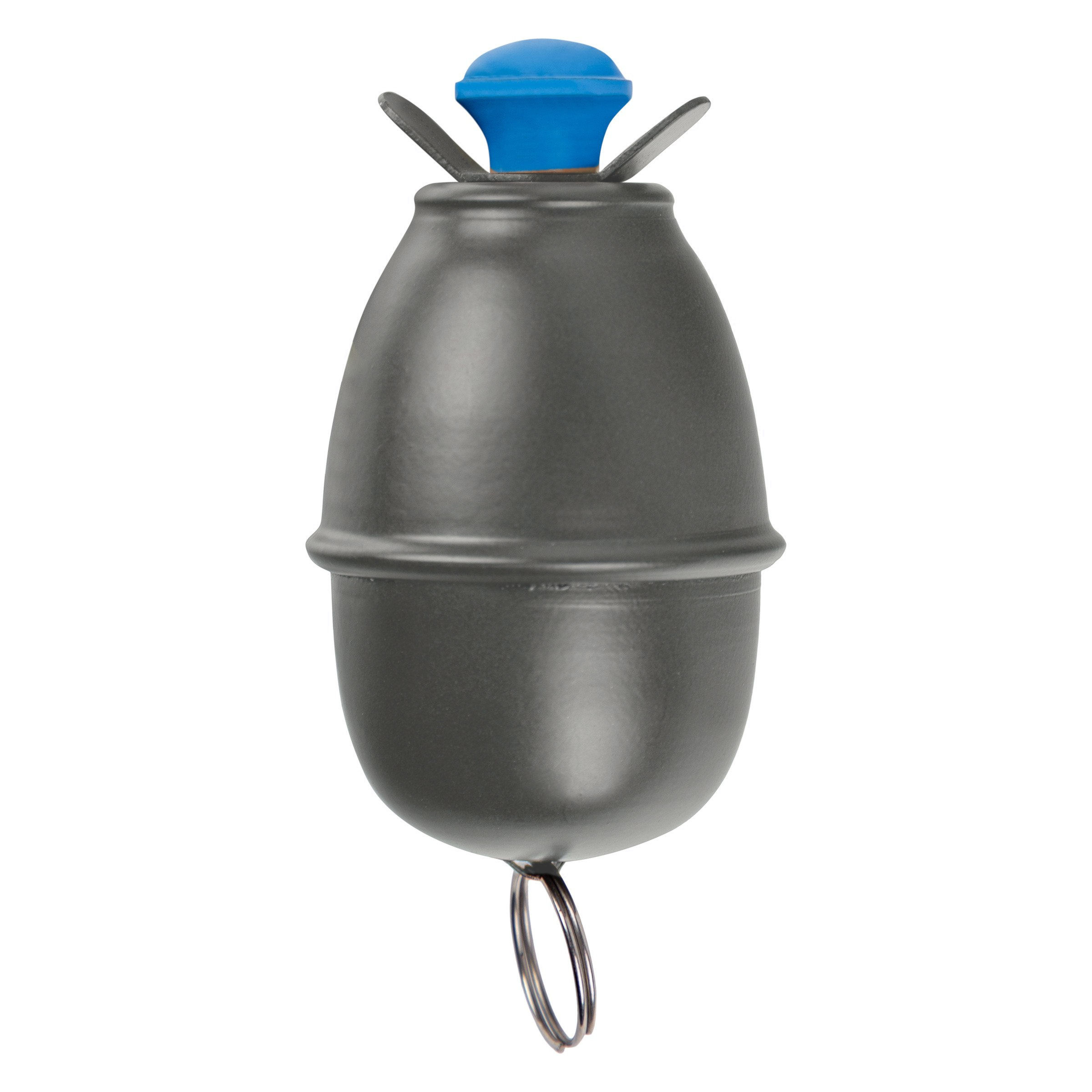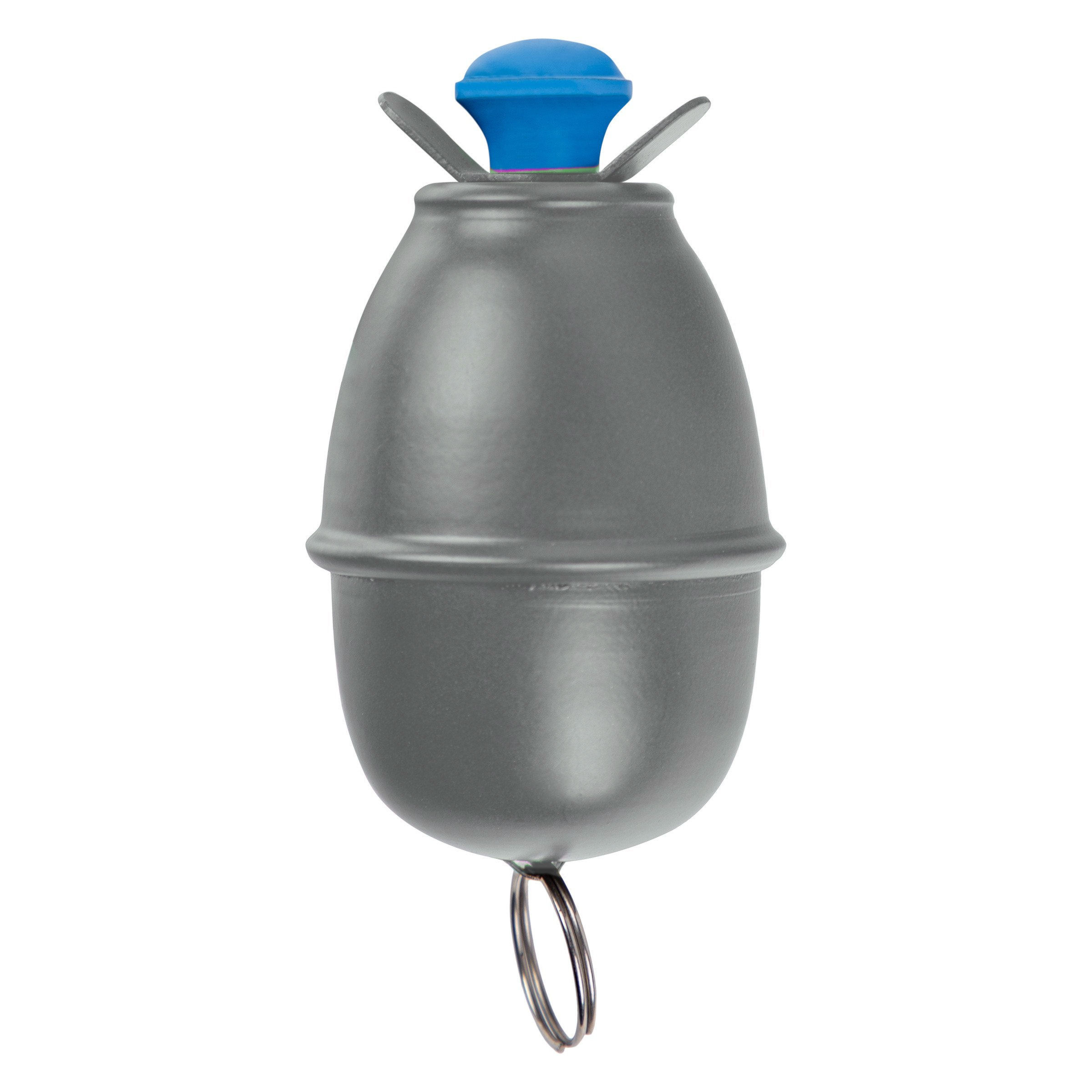 A faithful replica of the Eierhandgranate 39 grenade. The replica is made of steel and can be disassembled. The grenade is in Feldgrau color with a blue fuse cap. The replica does not contain any explosives; it is a dummy only.