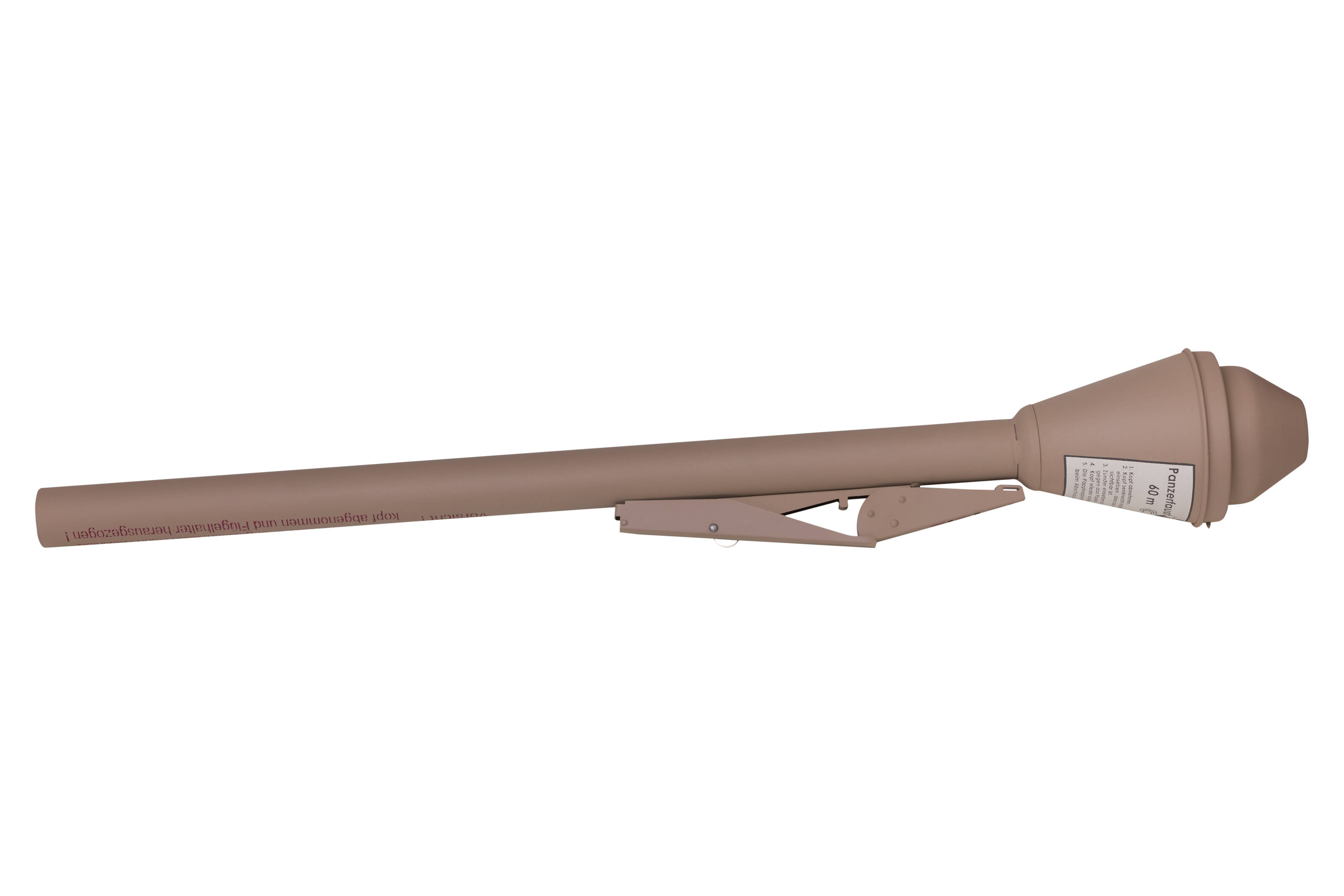 A replica of the German Panzerfaust, version 60 anti-tank grenade launcher. The replica is reproduced in a 1: 1 scale and is made of metal. The are no possibility to make a shot or loaded with ammunition. Replica don't have movable parts and it' can't be dismountable. The replica does not have any essential parts of the weapon, it cannot be converted into a firearm, so it is absolutely safe, it does not require a permit or registration.