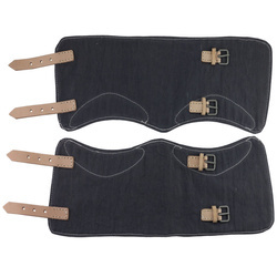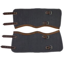 Opinacze niemieckie do trzewików, w późno wojennym wariancie z materiału w kolorze Blaugrau dla oddziałów Luftwaffe. Skórki w naturalnym kolorze.