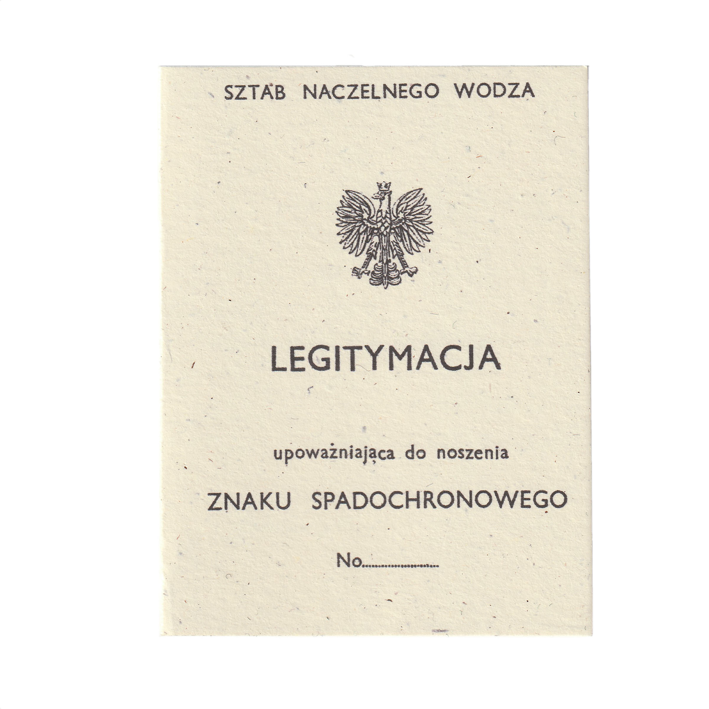 Tego typu dokumenty wydawane były żołnierzom, którym nadano Znak Spadochronowy (zwykły, oraz bojowy). Odznaka z legitymacją były nadawane od 1941 roku w Wojsku Polskim jak i żołnierzom sił sprzymierzonych, którzy ukończyli kurs spadochronowy. W trakcie 2 wojny światowej łącznie przyznano 6536 Znaków Spadochronowych, w tym 468 skoczkom z innych państw.