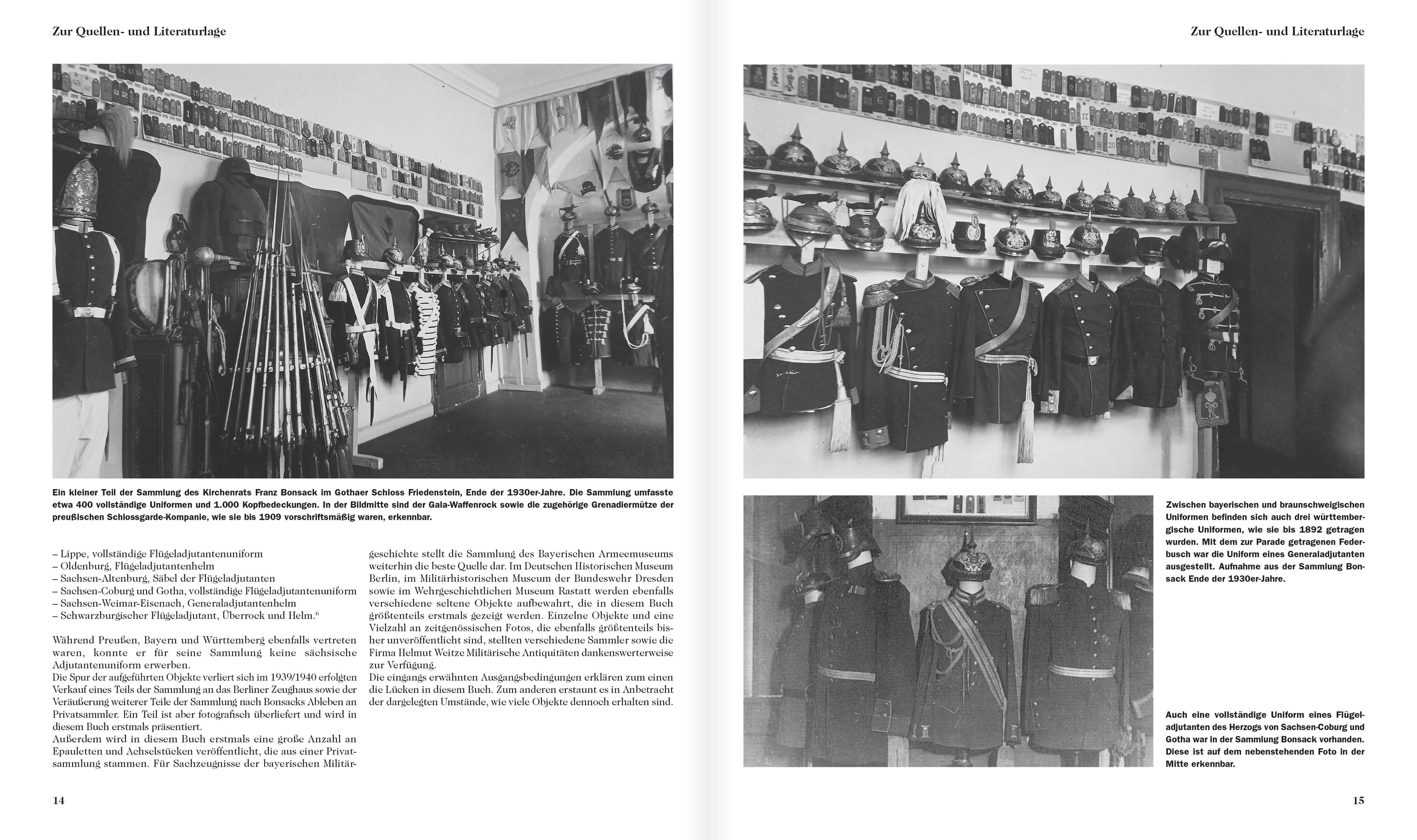 Świta wojskowa książąt niemieckich i wojsk dworskich od 1871 do 1914 roku. Łącznie 480 stron, bogato ilustrowane ponad 1200 fotografami. Książka w twardej oprawie. Poniżej przykładowe zdjęcia z książki. Wydanie w języku niemieckim.
