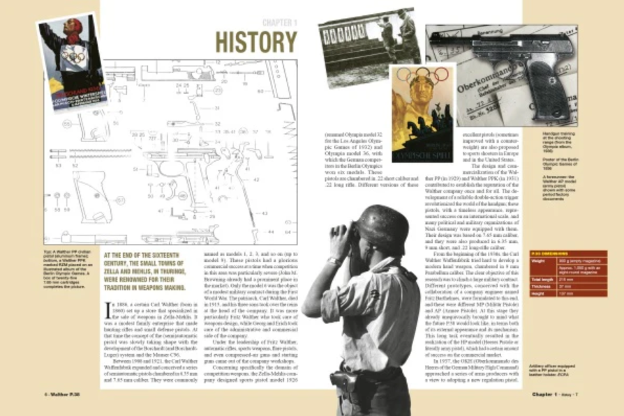 Ta szczegółowa, ilustrowana książka przedstawia pistolet Walther P.38 od momentu jego zaprojektowania, produkcji i testów, aż po użycie bojowe w II wojnie światowej. W książce, zawierającej ponad 270 zdjęć, znajdują się zbliżenia oznaczeń, lista numerów seryjnych oraz wizualny opis broni. W książce omówiono również akcesoria, takie jak magazynki, amunicję, kabury i zestawy do czyszczenia, a także rzadko spotykane elementy umundurowania i wyposażenia bojowego.