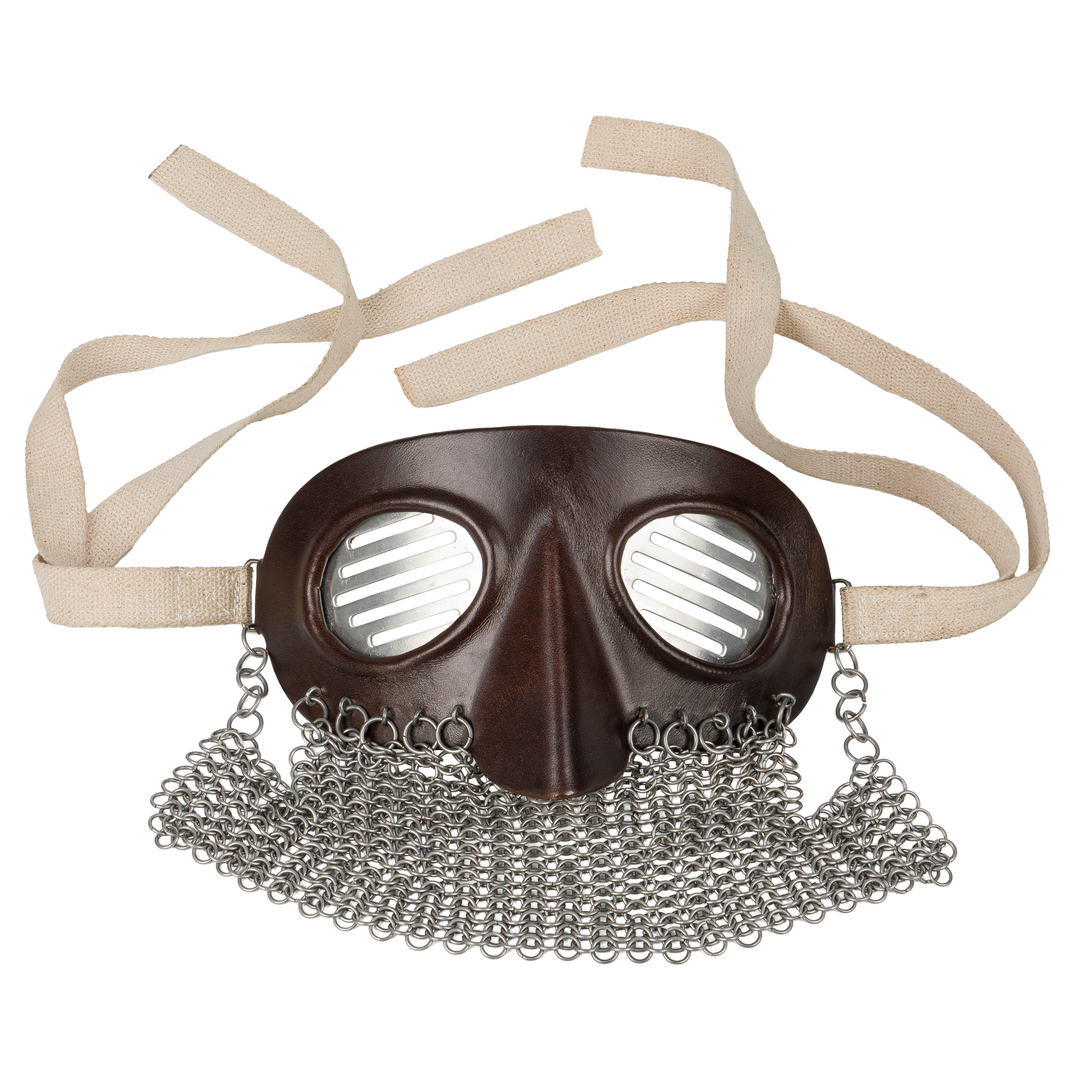 Replika brytyjskiej maski ochronnej. Wykonana z metalu (część twarzowa aluminium, kolczuga to zaś stal), oklejona skórą dla zwiększenia komfortu noszenia. Zawiązywana podwójnymi bawełnianymi tasiemkami. Maska została wynaleziona w Wielkiej Brytanii i wykorzystywano ją głównie przez załogi czołgów. Uwaga - maska nie służy do celów ochronnych.