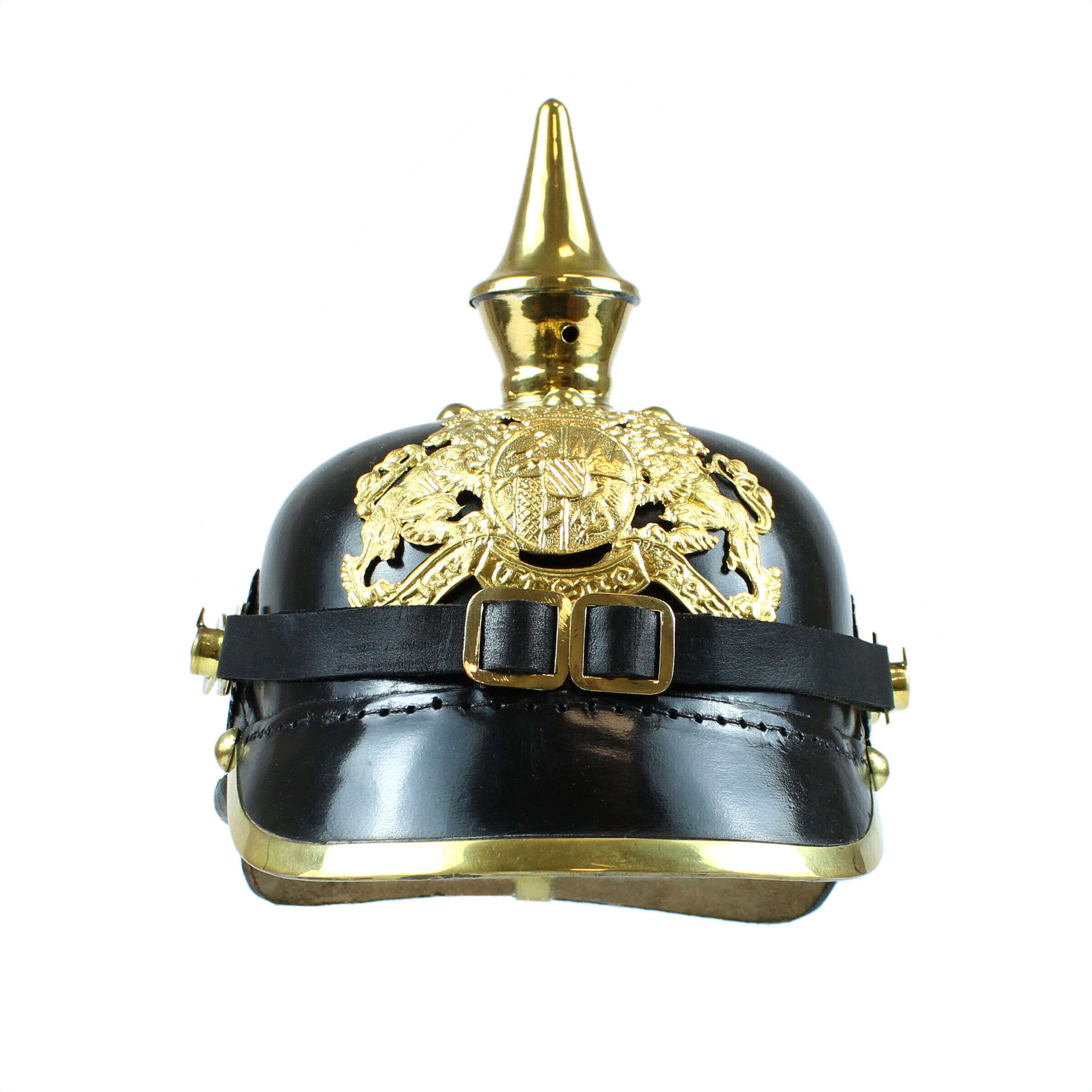 Przedmiotem oferty jest doskonała replika Pickelhaube M1895 w wersji z herbem Królestwa Bawarii. Pickelhauba w rozmiarze uniwersalny, posiada wkład skórzany, podpinka jest skórzana z mosiężnymi elementami dekoracyjnymi. Po bokach znajdują się rozety. Jedna w barwach narodowych Cesarstwa Niemieckiego, druga w barwach państwa związkowego. Replika wykonana jest z naturalnej lakierowanej skóry metodą tłoczenia, insygnia mosiężne.