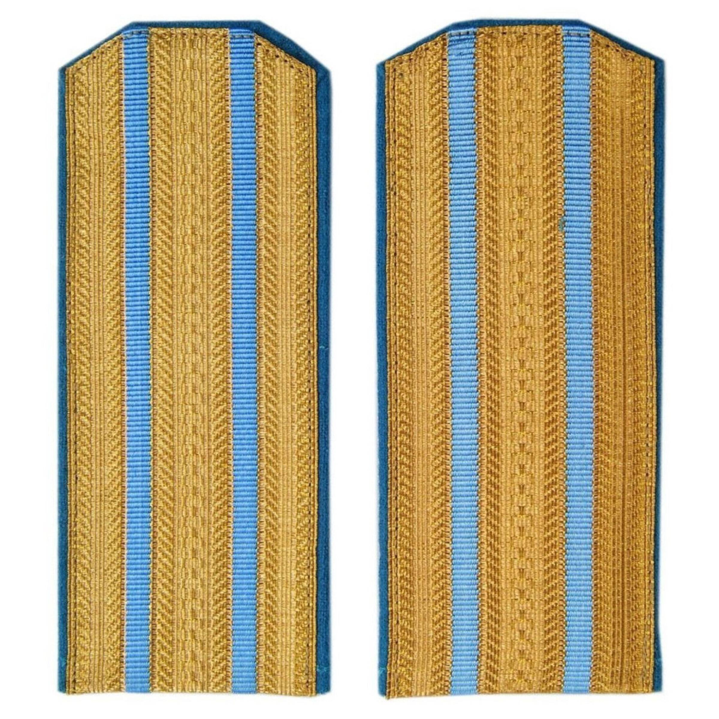 Doskonała replika naramienników wyższych oficerów Rosyjskiej Armii Imperatorskiej. Naramienniki mają niebieską podkładkę.