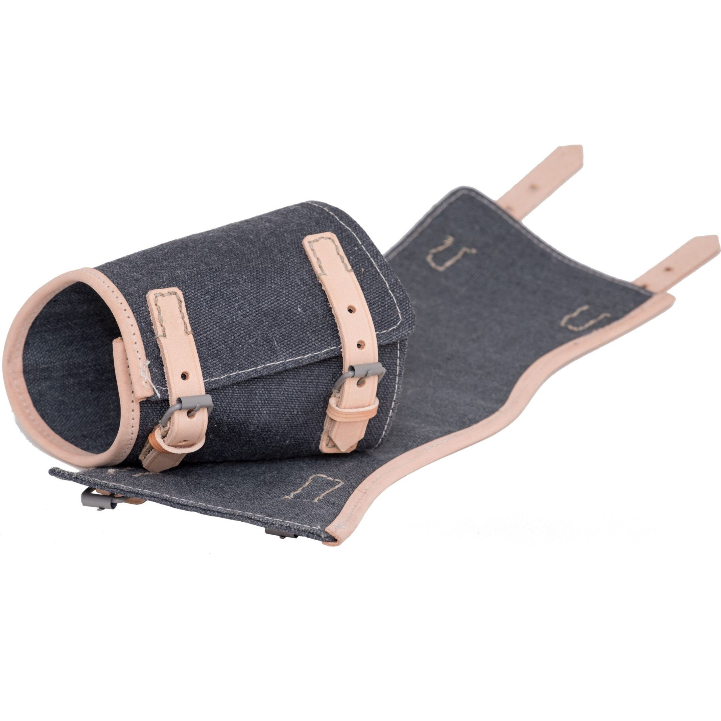 Replika niemieckich opinaczy, wczesno wojennych - produkowanych z materiału w kolorze Blaugrau. Klamry do zapięć są wykonane ze stali, pomalowane natryskowo w szarym kolorze, elementy skórzane wykonane są z groszkowanej skóry niebarwionej. Opinacze w wersji dla żołnierzy Luftwaffe.
