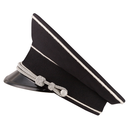 Replika czapki Allgemeine-SS. Czapka wykonana jest z czarnej gabardyny z białym otokiem, natomiast potnik zrobiony jest ze skóry w kolorze kremowym. Daszek czarny, lakierowany. Czapka posiada sznur wykonany ze srebrnego bajorka, mocowany na srebrne guziki groszkowane.