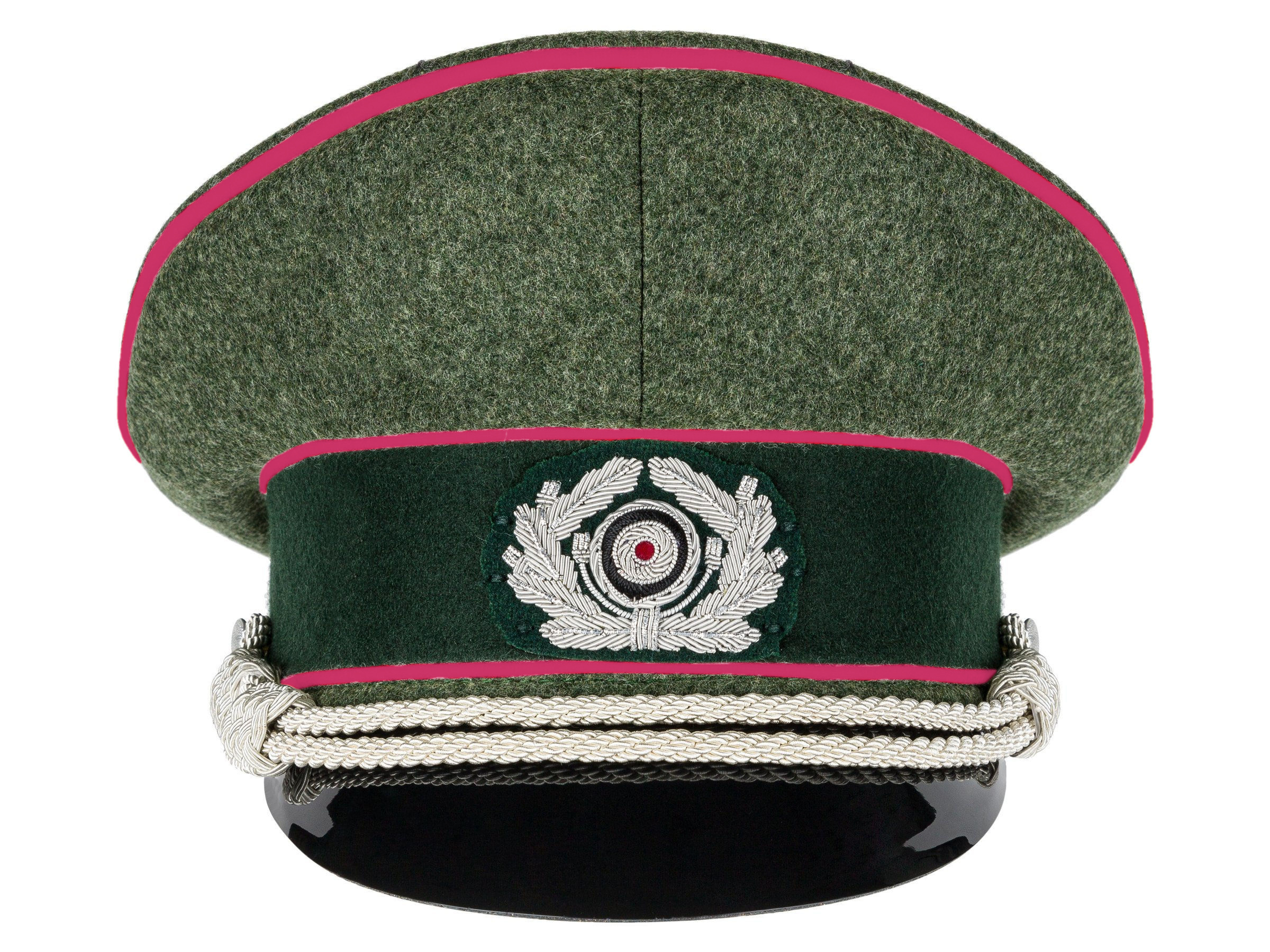 Doskonała replika czapki oficerskiej wojsk pancernych Wehrmachtu. Czapka jest w barwie broni wojsk pancernych (różowy), posiada w komplecie kokardę z wieńcem. Istnieje możliwość zamówienia czapki w innej barwie broni. Producentem czapki jest firma EREL - Robert Lubstein Militärmützenfabrik, mieszcząca się w Niemczech. Czapka posiada wszystkie oznaczenia producenta, jest w 100% identyczna z czapkami z epoki. Zachęcamy do zakupu takiej repliki - od sprawdzonego producenta z ponad 100-letnią tradycją, który dostarczał nakrycia głowy dla armii niemieckiej w okresie I oraz II wojny światowej!