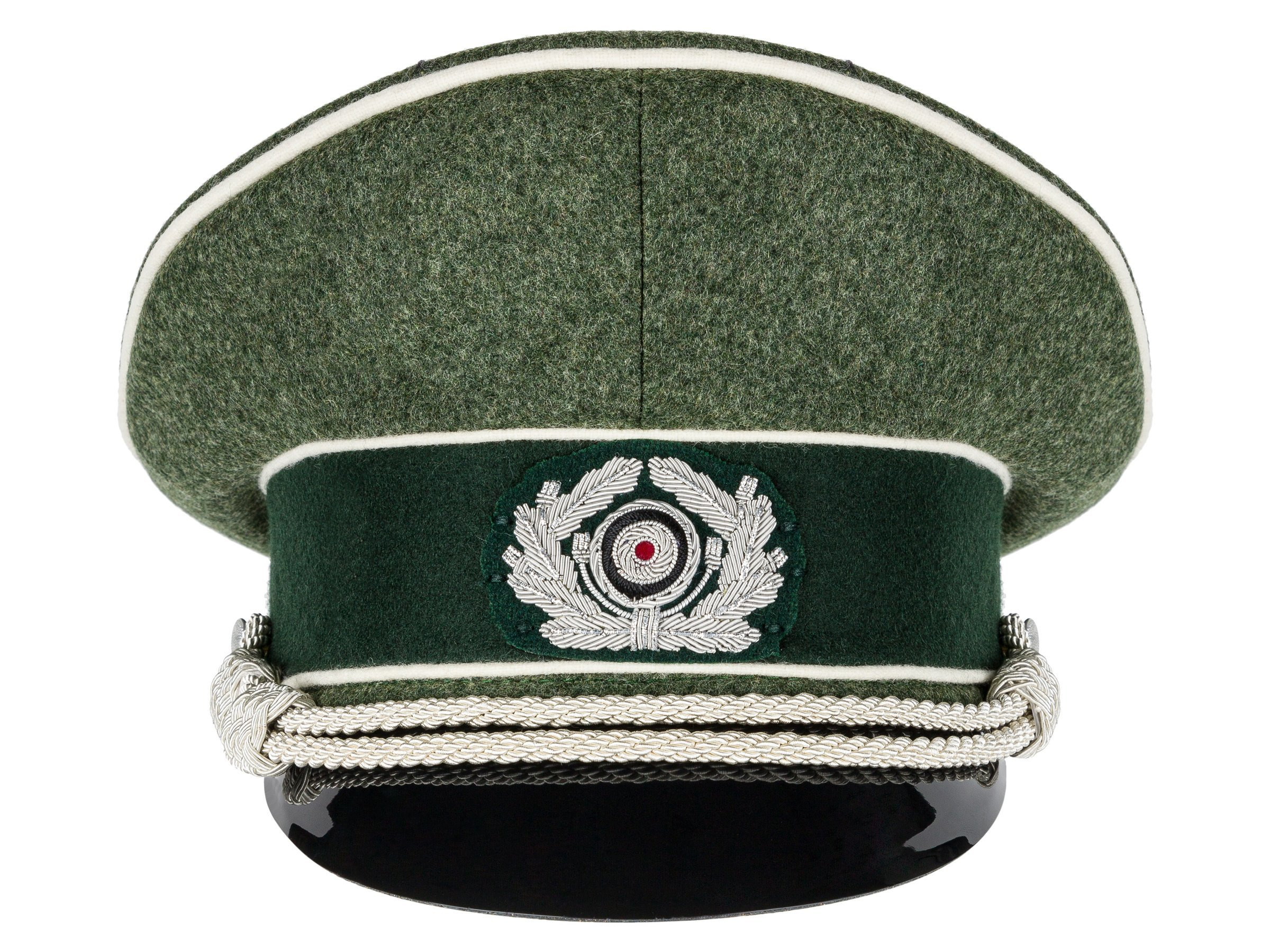 Doskonała replika sukiennej czapki oficerskiej piechoty Wehrmachtu. Czapka jest w barwie broni piechoty (biały), posiada w komplecie kokardę z wieńcem. Istnieje możliwość zamówienia czapki w innej barwie broni. Producentem czapki jest firma EREL - Robert Lubstein Militärmützenfabrik, mieszcząca się w Niemczech. Czapka posiada wszystkie oznaczenia producenta, jest w 100% identyczna z czapkami z epoki. Zachęcamy do zakupu takiej repliki - od sprawdzonego producenta z ponad 100-letnią tradycją, który dostarczał nakrycia głowy dla armii niemieckiej w okresie I oraz II wojny światowej!