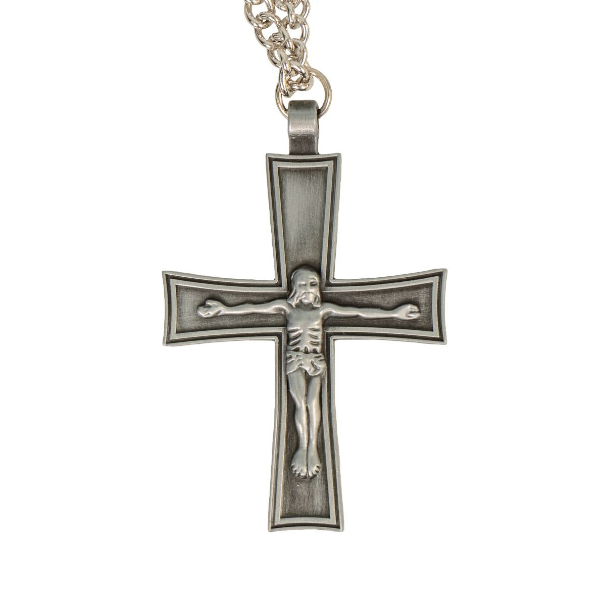 Replika niemieckiego krzyża katolickiego kapelanów Wehrmachtu. Krucyfiks jak i łańcuszek jest wykonany metalu. Długość łańcuszka to 76 cm.